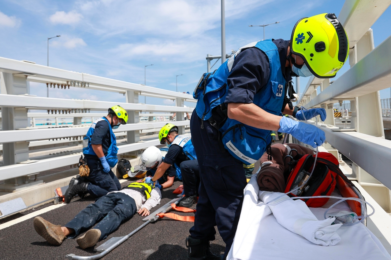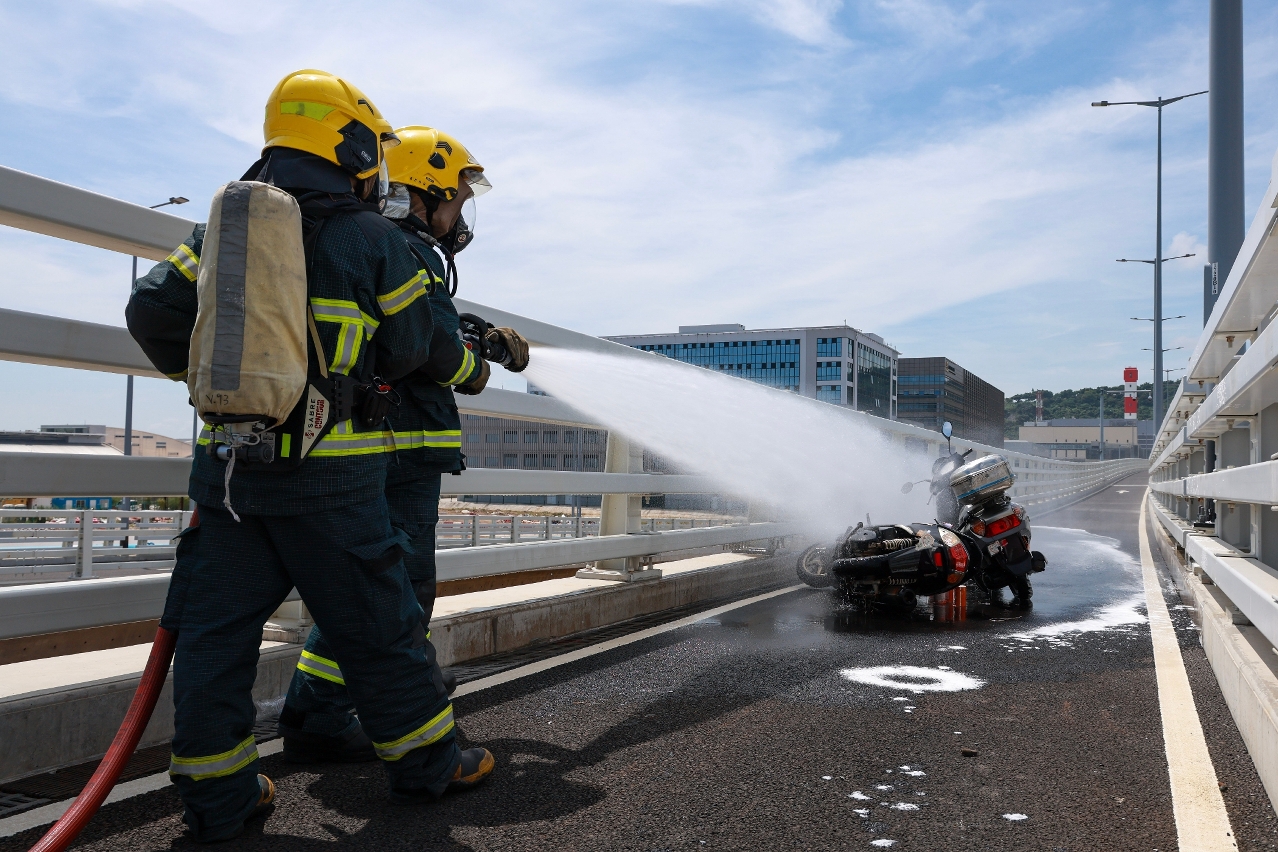 為加強澳門大橋在通車後的救援部署和應急協調能力,消防局於本年9月10日上午,聯同公共建設局、交通事務局及治安警察局在澳門大橋電單車專道舉行交通意外事故演習。