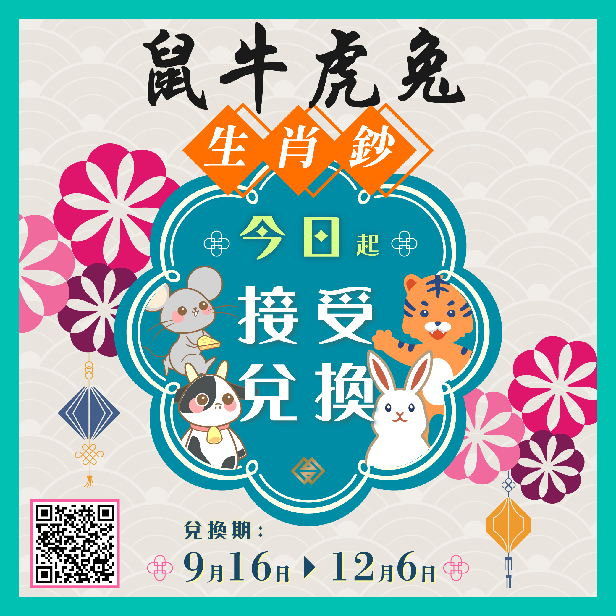 兩家發鈔銀行早年已發行的庚子鼠年、辛丑牛年、壬寅虎年及癸卯兔年生肖鈔,今(16)日起至2024年12月6日提供兌換服務。每名已登記的澳門居民可按所選定的日期及銀行網點,帶備身份證正本及兌換金額,兌換由每家發鈔銀行發行的鼠年、牛年、虎年及兔年生肖鈔各15張,即合共可兌換鈔票總數量為120張,兌換所涉及金額為1,200澳門元。