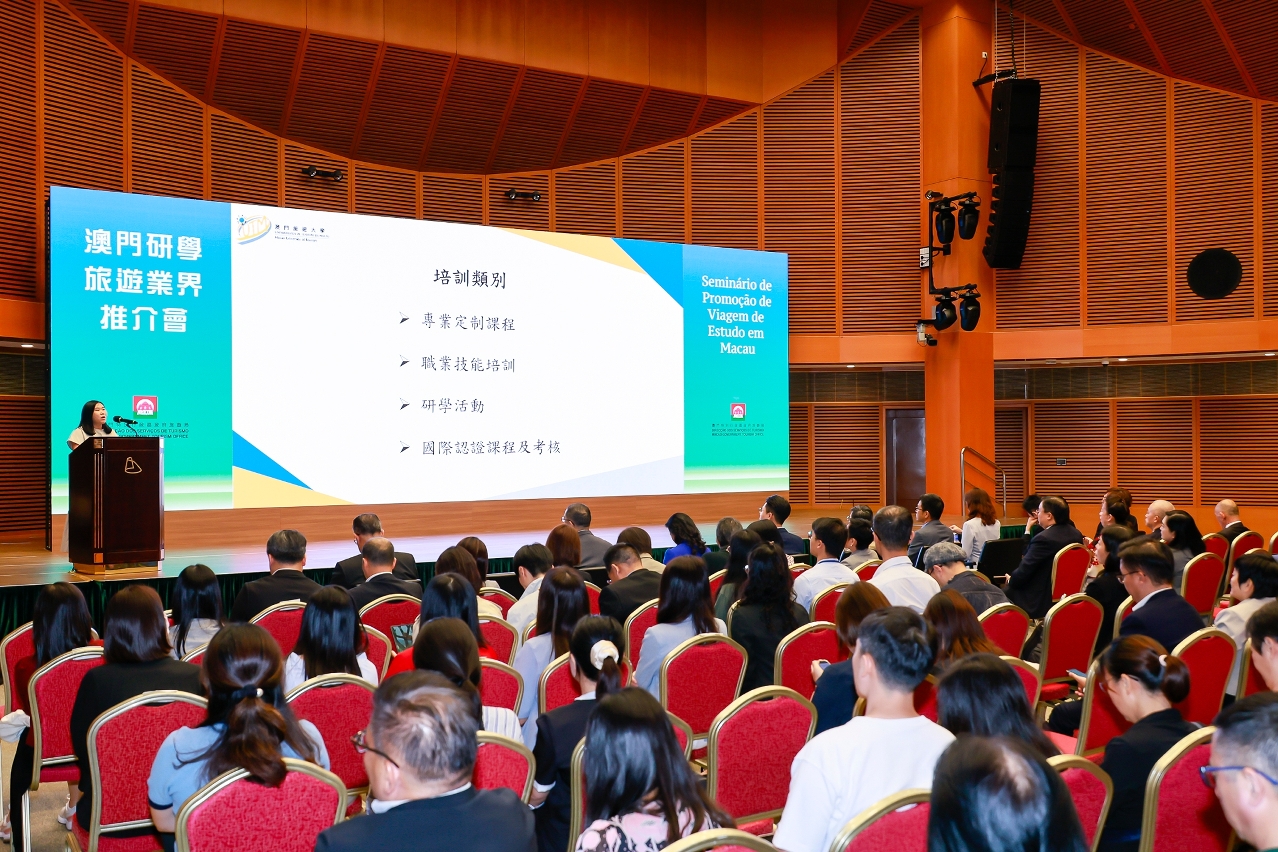 旅遊局今(24日)舉辦“澳門研學旅遊業界推介會”,邀請相關政府部門、私企及高等院校介紹各自領域的研學資源,讓旅遊業界熟悉澳門的研學資源,把握澳門研學旅遊的發展機遇,推出具澳門特色的研學旅遊線路及產品,促進“旅遊+教育”的發展,共同打造澳門成為研學旅遊目的地。