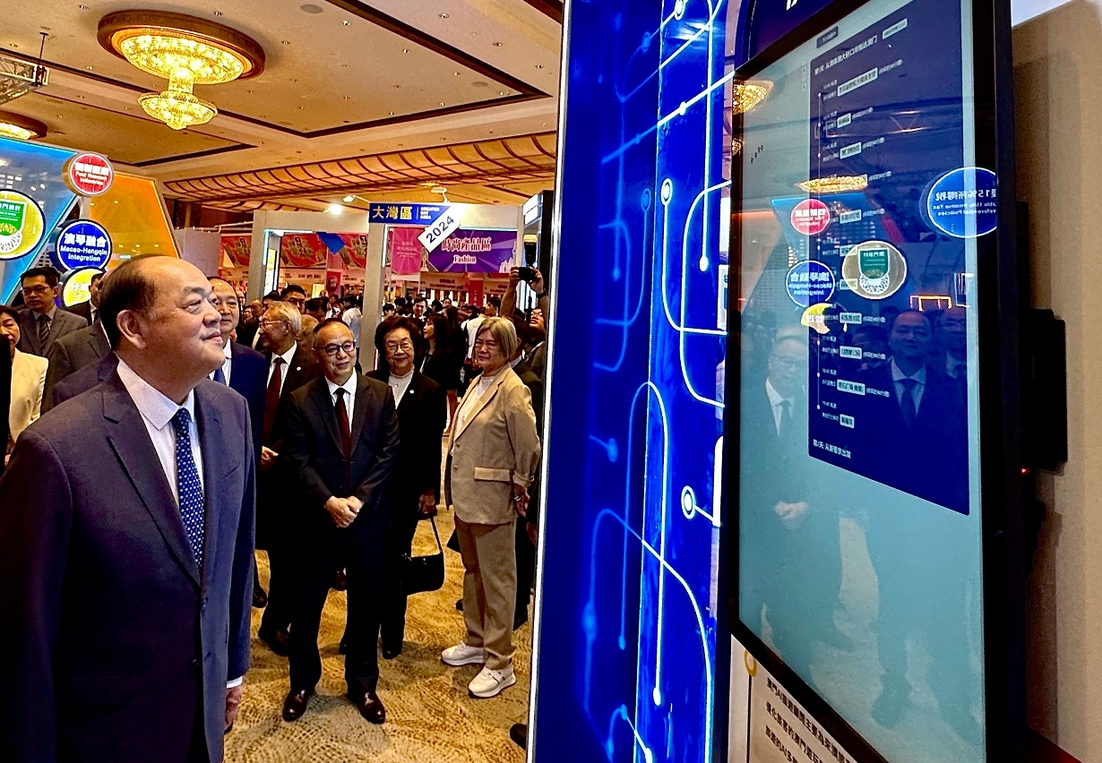 澳大展出成果涵蓋創新科技、大健康等領域,包括5項科研成果及4項孵化企業的產品,吸引一眾嘉賓的濃厚興趣。澳門特別行政區行政長官賀一誠和一眾嘉賓在澳大校長宋永華等陪同下參觀澳大展位。