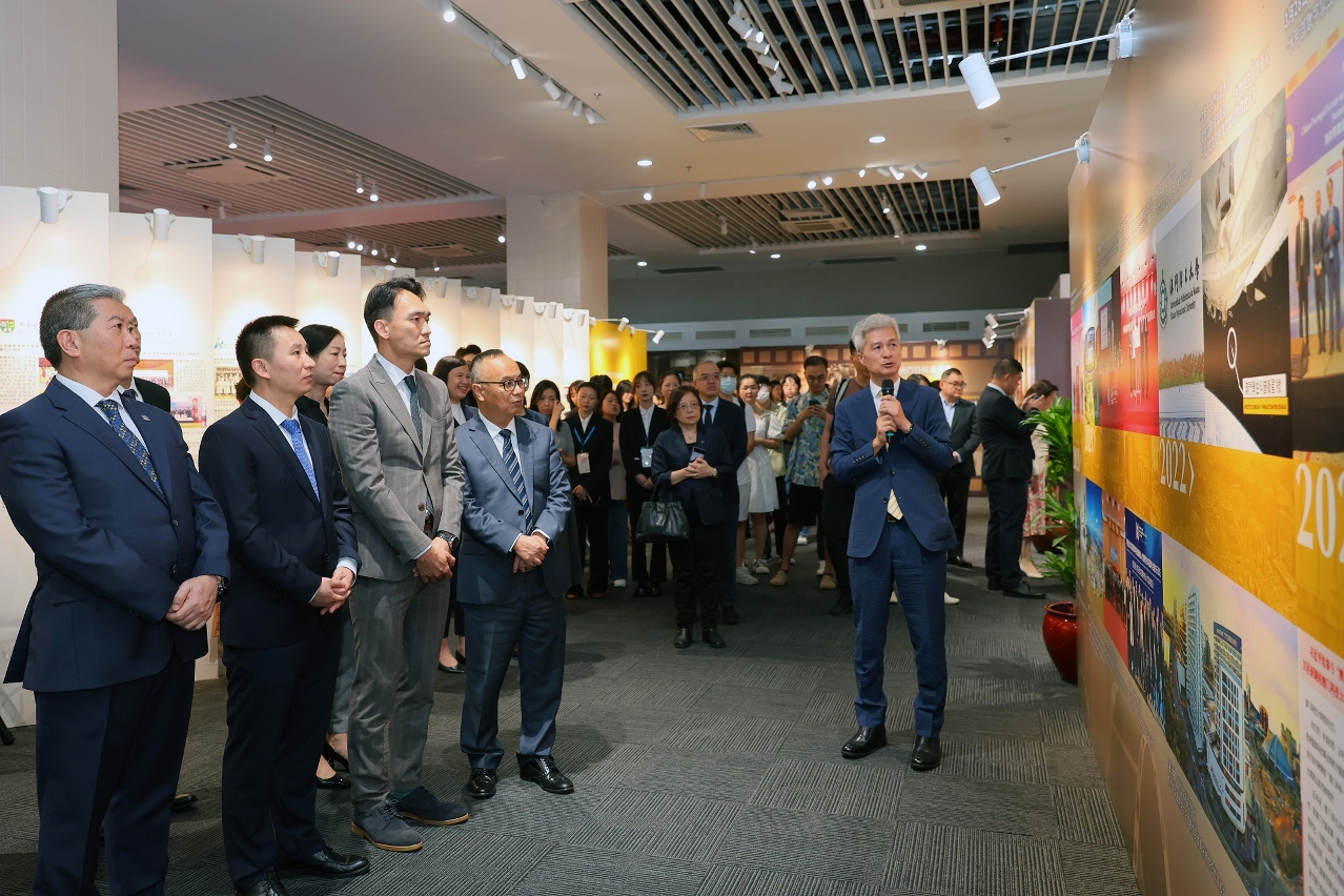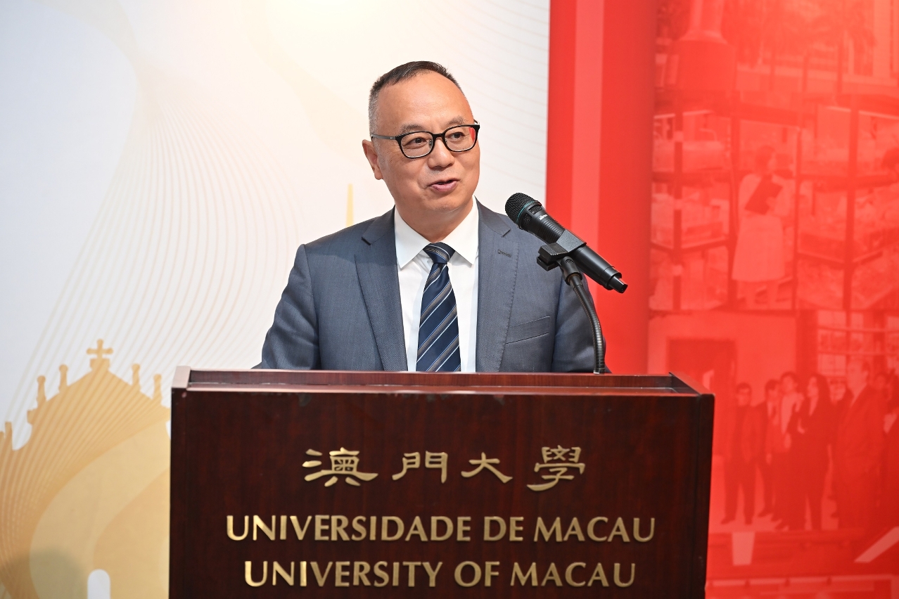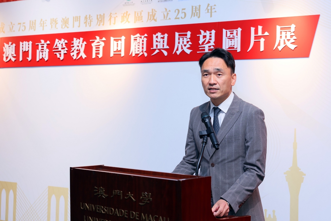 宋永華致辭時表示,適逢今年是中華人民共和國成立75周年,以及澳門特別行政區成立25周年,澳大與澳門九所高等院校共同舉辦展覽,一同回顧澳門特區成立前後的高教治理、發展歷程,以及探討未來高教發展與展望。他又指,澳門高等教育歷經25年的耕耘,取得了一連串的發展成就。他希望在中央政府以及澳門特區政府的支持下,在澳門各高校的共同努力下,繼續為澳門高教發展作出最大貢獻,立足澳門,共建灣區,融入國家,走向世界。
