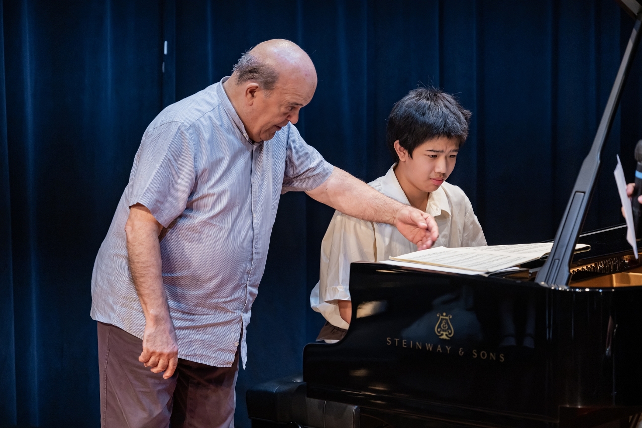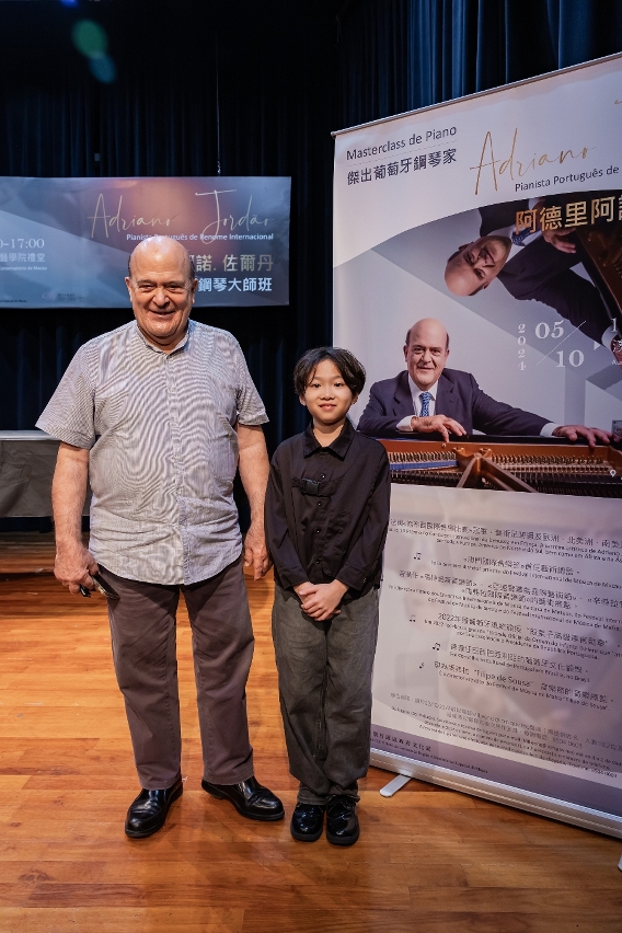 葡萄牙鋼琴家阿德里阿諾•佐爾丹曾獲法國“德布西國際音樂比賽”冠軍,亦為澳門國際音樂節的首任藝術總監,其卓越的鋼琴演奏技藝與深厚的音樂素養廣受讚譽。此次他以鋼琴家身份分享了自己對音樂作品的理解與55年來的鋼琴演奏心得,更用其獨特的藝術視角和豐富的演奏經驗,為澳門青少年鋼琴學生作出指導。他引導學生在演奏過程中表達音樂的敘事性,激發學生對畫面場景的想像力,運用多種技巧展現聲音色彩的變化,並為學生講述作曲家的生平及樂曲的創作背景,强調在學習音樂的過程中,練習與思考相輔相成的重要性。大師對學生們所展現出的才華及天賦,也給予肯定和讚揚。
