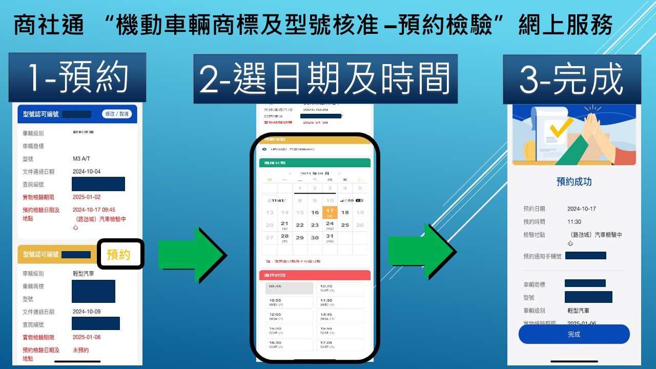 商社通 “機動車輛商標及型號核准 –預約檢驗”網上服務