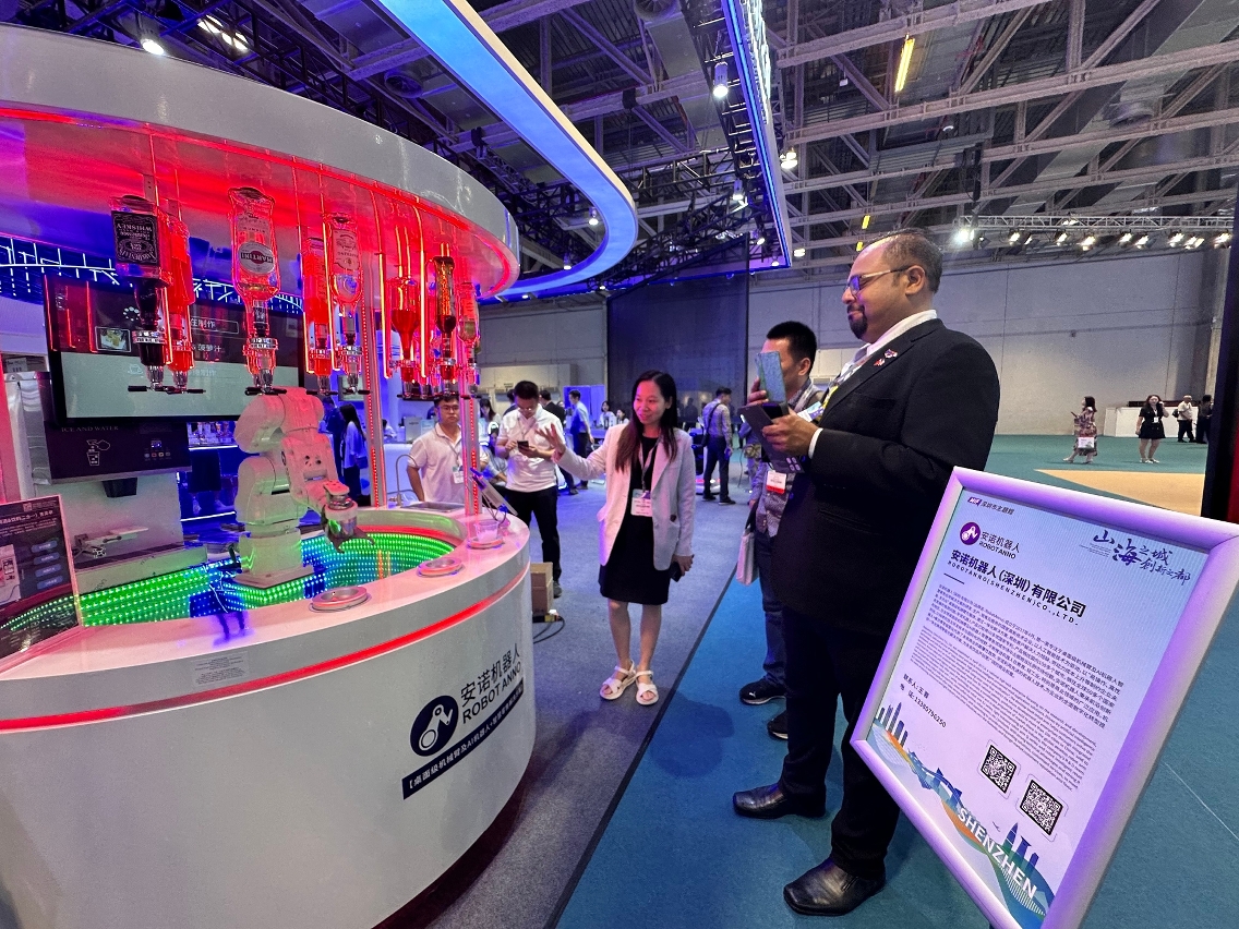 今年兩展10個展區亮點紛呈。其中MIF黑科技內涵進一步加強,MIF伙伴市—深圳市的展館、智能展區、“2024科技周暨創科成果展”等“強強聯手”展示多個“吸睛”科技新產品。不少入場觀眾零距離與仿生機器人進行互動,也可在無人機演示區內親身體驗獨特的共享航拍科技產品等。有觀眾表示 “第一次能這麽近距離互動”,大幅拉滿參與展會的“科技感+驚喜值+趣味度”,具體感受到科技智慧之美及活力。