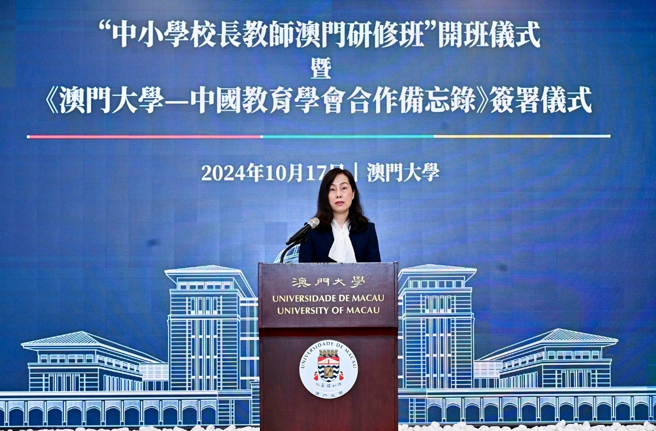 澳門特別行政區政府社會文化司司長歐陽瑜表示,特區政府正着力推進“高新技術產業”在內的重點產業發展,透過推行“人才培養、人才回流與人才引進”並行的政策,輸送高質量、創新型人才。近年,大力推動學校持續完善課程建設和優化人才培養模式,善用國家重點實驗室等優勢資源,緊握“大灣區”和“深合區”的發展契機,儲備高新技術人才,為推進國家現代化產業體系建設,加快發展新質生產力,貢獻澳門力量。同時,特區政府正按序實施新修訂的“課程框架”和“基本學力要求”,不斷加強學生在人工智能方面的教育。期望此次研修的學員能學以致用,攜手為國家培養人才,為粵港澳大灣區教育發展注入新的力量。