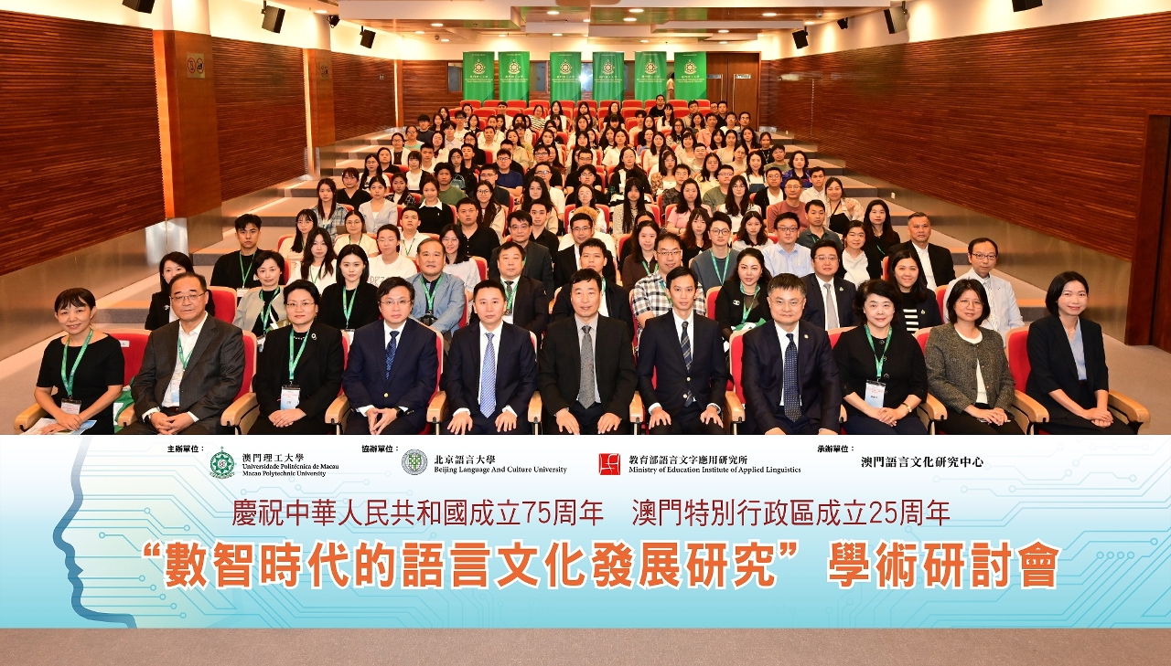 為慶祝中華人民共和國成立七十五周年、澳門特別行政區成立二十五周年、推進數智時代語言文化研究與信息技術的融合創新,拓展中國國際中文教學的嶄新局面,加強粵港澳大灣區語言文化與教育教學的相互促進,澳門理工大學與國家教育部語言文字應用研究所、北京語言大學聯合,在澳門理工大學舉辦了“數智時代的語言文化發展研究”學術研討會,來自各地的專家學者及學生近二百人出席。