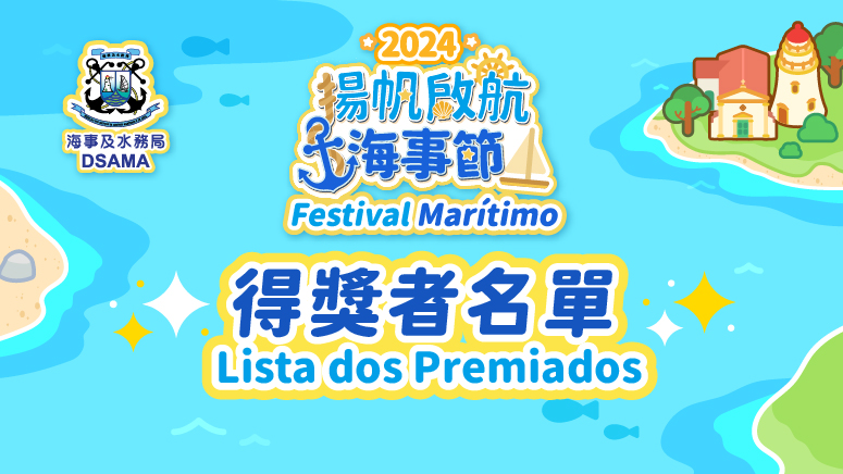 由海事及水務局主辦,信德中旅船務管理有限公司、金光渡輪有限公司、粵通船務有限公司和澳門疏濬服務有限公司協辦的“揚帆啟航海事節2024”於上月圓滿舉行。今次活動設有終極大抽奬,得奬名單已在海事及水務局網頁www.marine.gov.mo公佈。