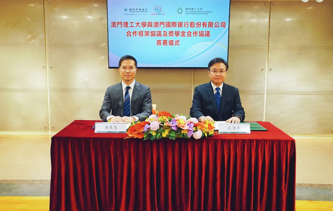 為加強校企合作,澳門理工大學與澳門國際銀行股份有限公司簽署合作框架協議及獎學金合作協議,雙方在人才培養、教學科研、成果轉化等方面開展合作,攜手為澳門培育優秀金融行業人才。