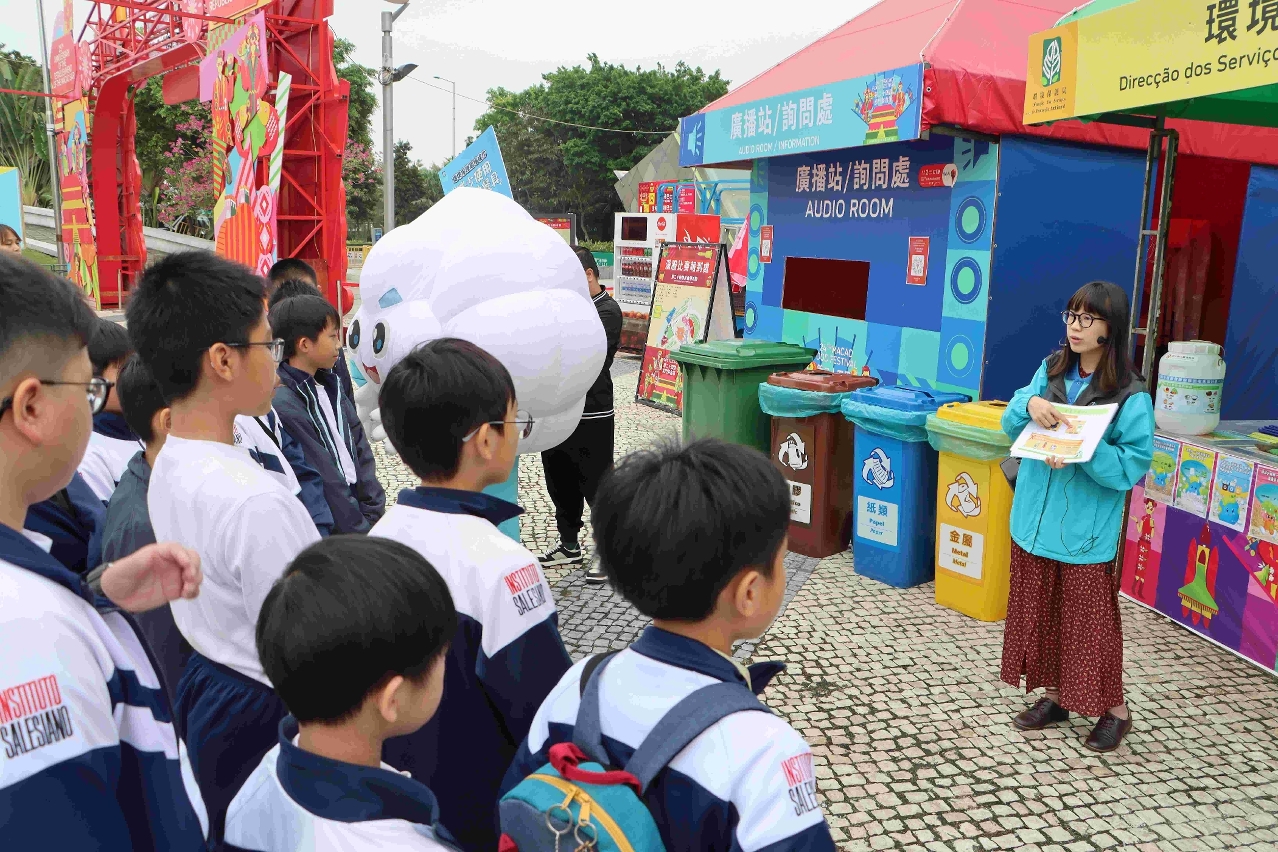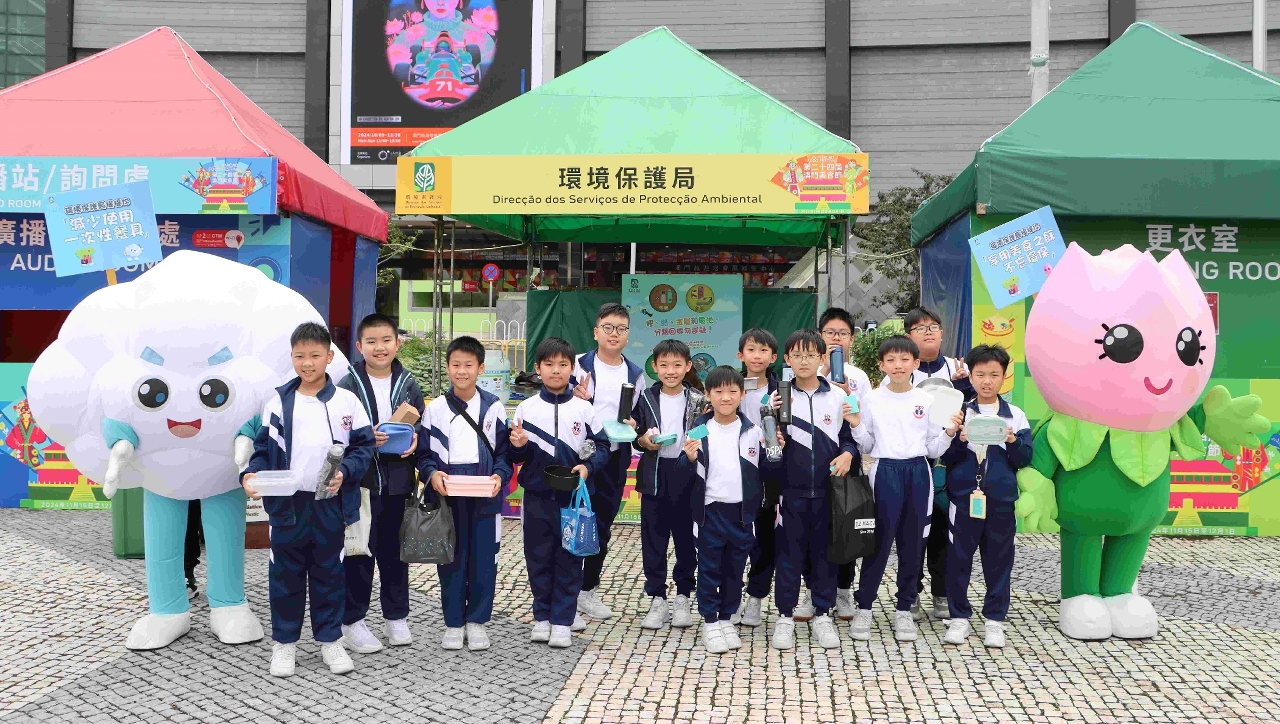 環境保護局舉辦「環境保護局吉祥物與您暢遊美食節」活動,組織了綠色學校慈幼中學約三十位師生及家長於澳門美食節,共同實踐減少使用一次性餐具、資源垃圾分類回收、廚餘回收、惜食等低碳行為。