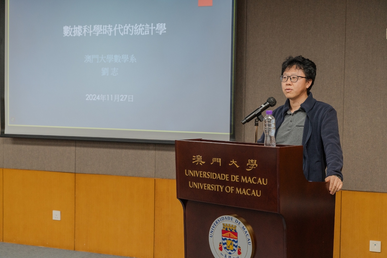 澳門大學今(27)日舉行“澳大學人研究講壇”第22講,由澳大科技學院數學系教授劉志以“數據時代的統計學”為題分享其研究成果。講座現場座無虛席,並有不少中學師生以線上形式參與。