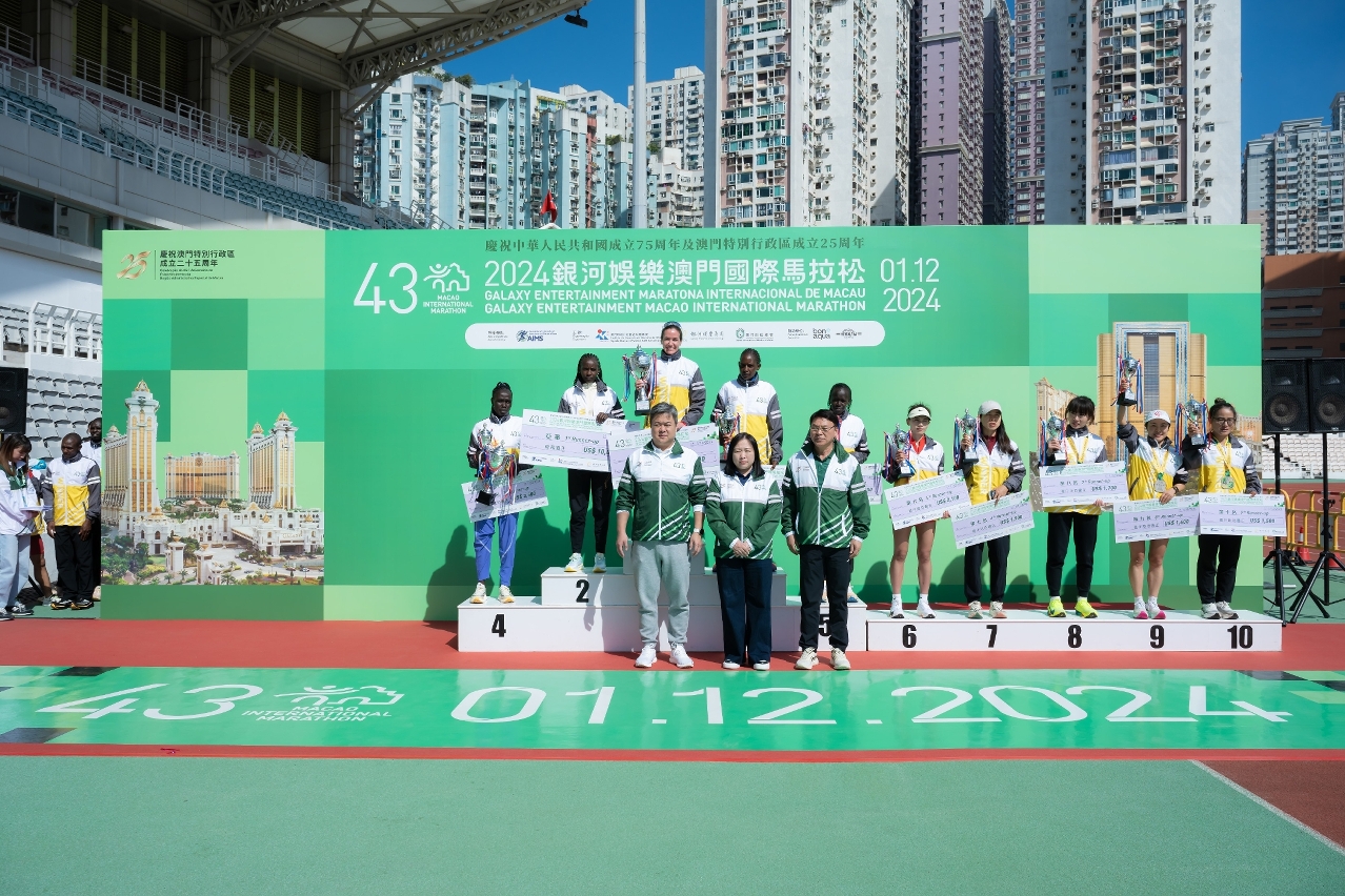 由體育局、銀河娛樂集團及澳門田徑總會主辦的「慶祝中華人民共和國成立75周年及澳門特別行政區成立25周年 - 2024銀河娛樂澳門國際馬拉松」今(1)日於奧林匹克體育中心運動場圓滿舉行,馬拉松男子全程組別,來自埃塞俄比亞的狄比尼勇奪冠軍,成功衛冕,女子全場組別由俄羅斯莫素娃封后;而王坤則贏得馬拉松澳門運動員男子組的冠軍,更刷新澳門紀錄,澳門運動員女子組冠軍由吳楊楊勇奪。