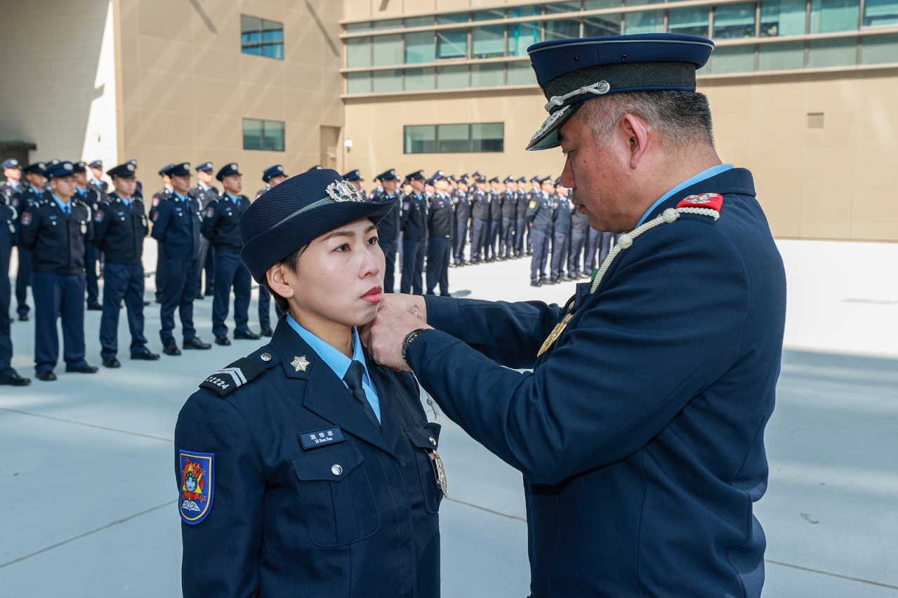 12月13日,治安警察局在治安警察局總部大樓為新入職警員舉行就職儀式,儀式由治安警察局梁慶康副局長主持,伍素萍副局長及各部門主管一同出席為新警員戴上肩章。