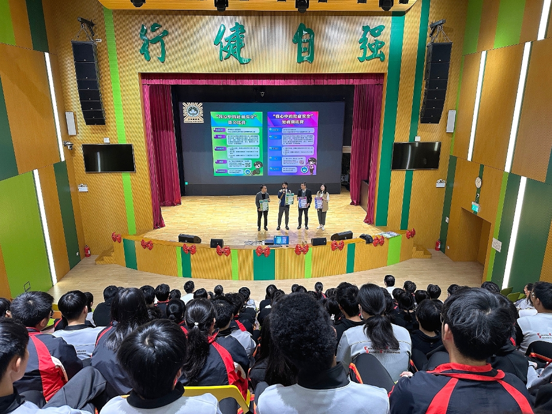 由澳門特別行政區政府與中央人民政府駐澳門特別行政區聯絡辦公室聯合舉辦的“我心中的社會安全”徵文及短視頻比賽現正接受報名,司法警察局積極派員走訪本澳高等院校和中學開展相關宣傳工作,鼓勵學生踴躍參與。