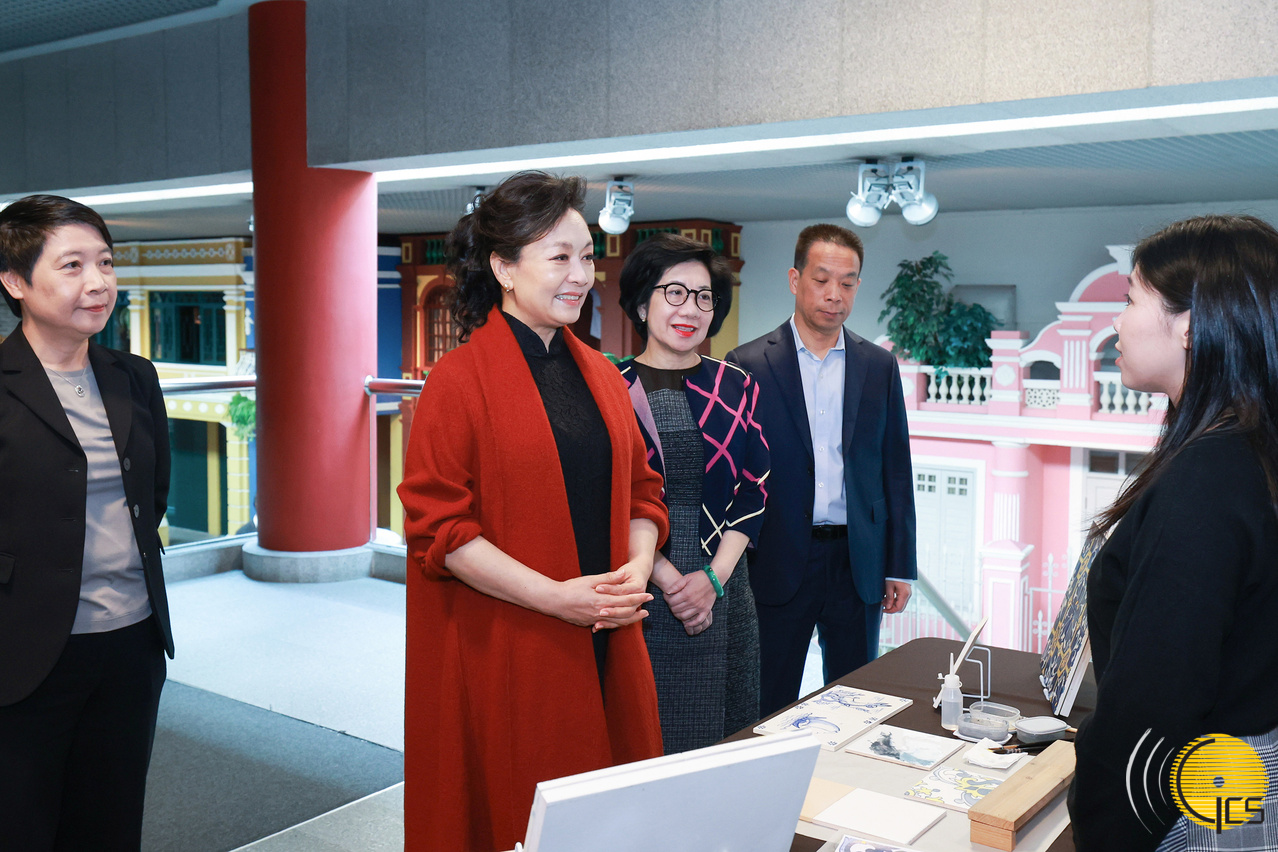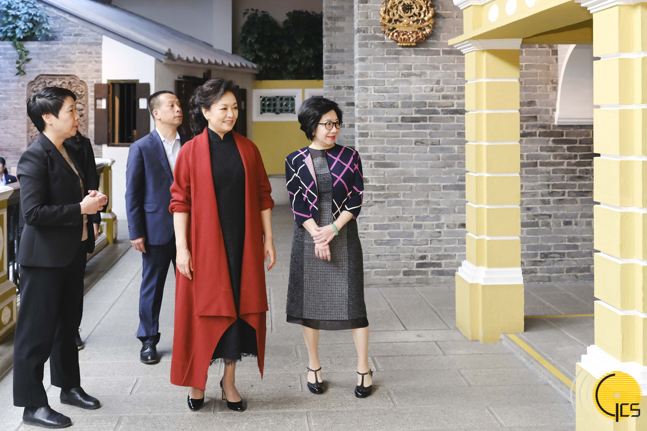 12月19日上午,國家主席習近平夫人彭麗媛在澳門特別行政區行政長官賀一誠夫人鄭素貞陪同下,來到澳門博物館參觀。彭麗媛仔細察看館藏文物,深入瞭解澳門的歷史變遷和中西交融的建築、行業、文化生活等情況,同當地瓷磚畫製作、木雕等非遺傳承人親切交流。