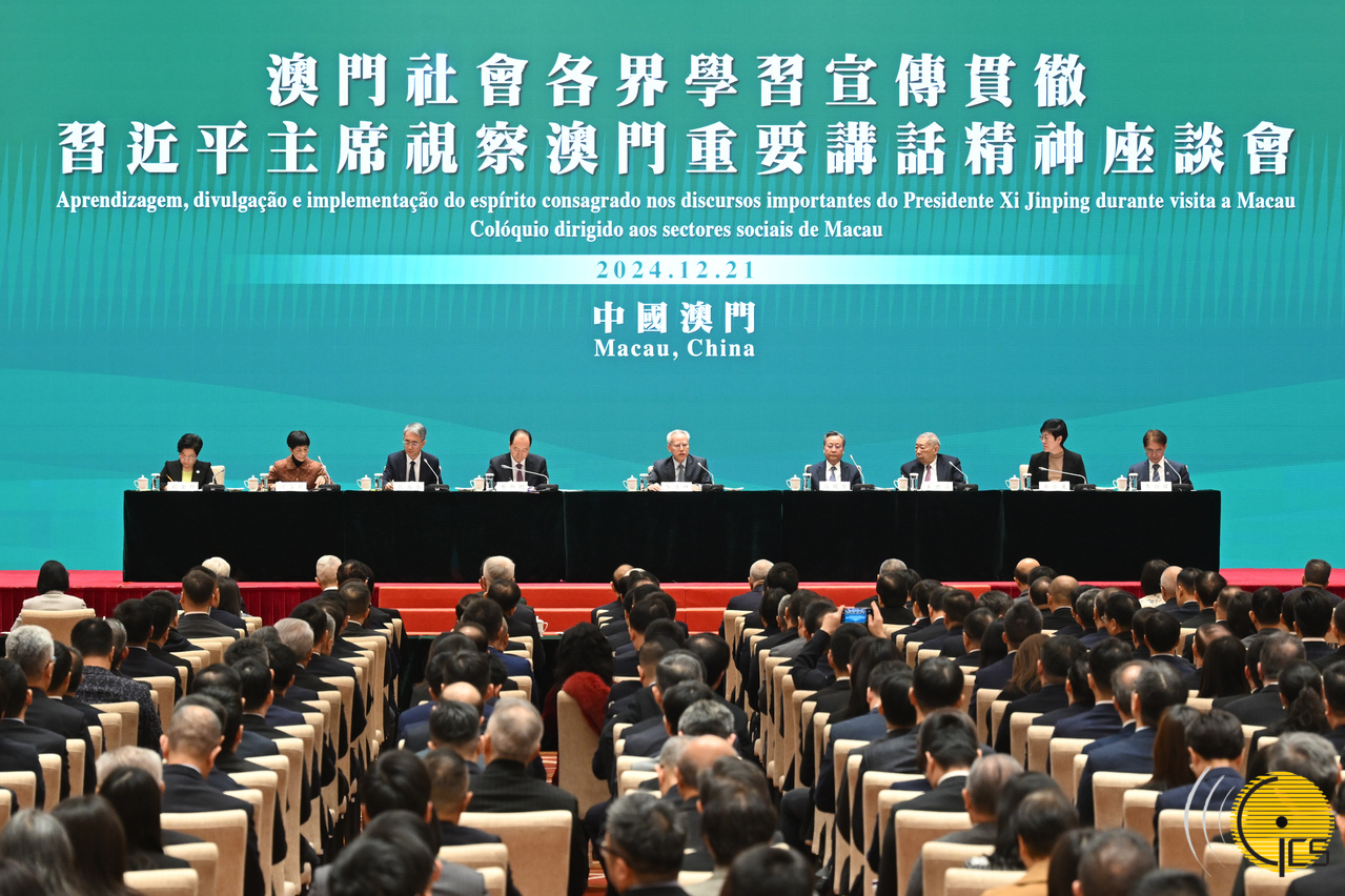 特區政府今(21)日舉行“澳門社會各界學習宣傳貫徹習近平主席視察澳門重要講話精神座談會”。行政長官岑浩輝表示,習近平主席視察澳門期間發表的系列重要講話,高屋建瓴,精闢深邃,為澳門特區未來的發展建設把舵定向。在新的發展起點上,新一屆政府將團結帶領社會各界在“一國兩制”成功實踐的寶貴經驗基礎上,以習近平主席視察澳門重要講話精神為重要遵循和指引,搶抓機遇、銳意改革、擔當作為,更好發揮“一國兩制”制度優勢,不斷開創“一國兩制”事業高質量發展新局面。