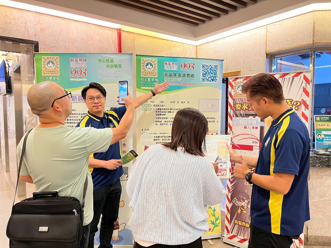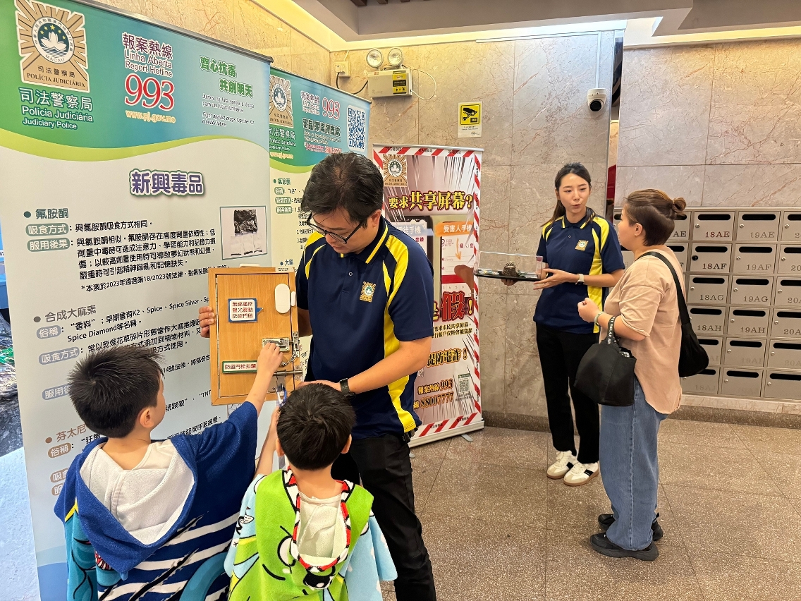 為讓防罪資訊全面滲透社區,提高本澳居民的防罪意識和能力,警民合力構築社區防罪屏障,司法警察局在本澳各區約50幢大廈開展“大廈防罪推廣站"活動,向居民宣傳禁毒、防騙及防盜等防罪資訊,共有約9,000名居民參與活動。