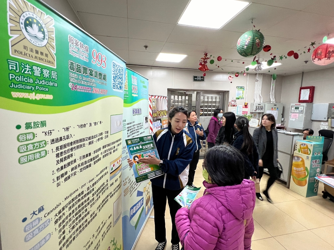 活動期間,司警局透過現場設置防罪資訊展板,向居民詳細介紹毒品、電訊網絡詐騙及盜竊等犯罪的最新作案手法和預防方法,並與居民進行防罪互動遊戲,加深他們對防罪資訊的認識和記憶。同時,司警局人員向居民展示多款仿真毒品模型,讓居民認識常見毒品的外觀,並講解如何辨識毒品,提高他們的防毒、拒毒意識;亦介紹了簡單易用的防盜設備,教導居民加強家居防盜措施,免被不法分子有機可乘。