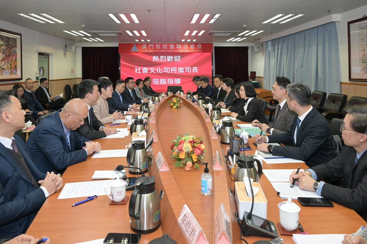 社會文化司司長柯嵐今(18)日上午拜訪澳門街坊會聯合總會,就編製社會文化範疇本年度施政方針聽取意見和建議。