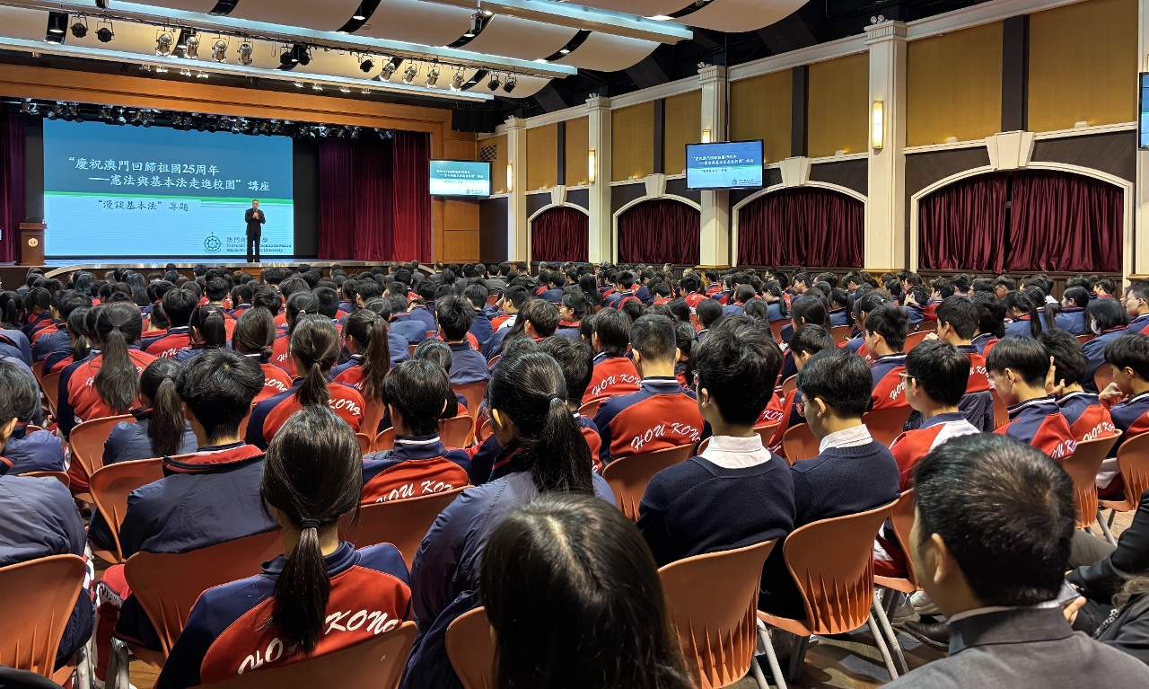 為進一步增強本澳中學生的國家意識、愛國精神以及法制觀念,澳門理工大學“一國兩制”研究中心連續第五年走進本澳中學舉辦講座,宣講國家憲法、澳門基本法以及維護國家安全法,近期共有三十多間中學近九千名學生踴躍參與,成效顯著。