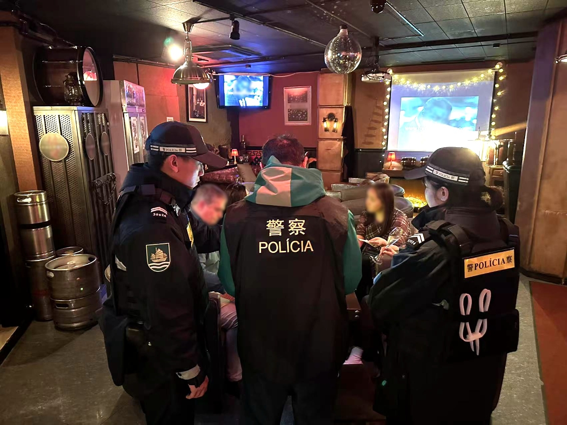 在警察總局統籌下,治安警察局於昨(25)日持續開展“冬防行動2025”,以維護本澳良好治安環境。治安警察局轄下澳門警務廳、海島警務廳、交通廳及情報廳聯同特警隊警犬組共派出50名人員,分別巡查澳門各區多間酒吧、餐廳、卡拉OK及賓館,並進行不定點查車行動,以預防及打擊各種不法行為和犯罪活動。