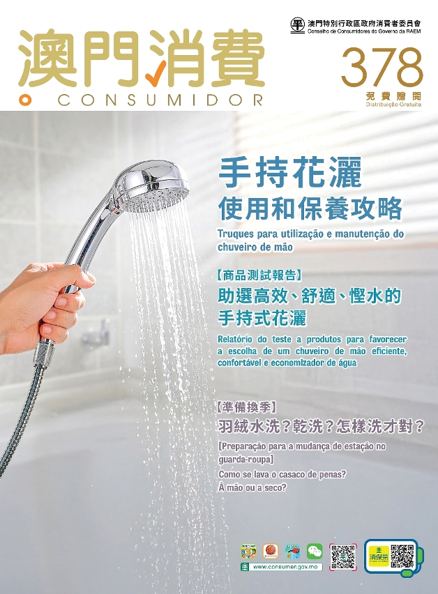 消費者委員會新出版的《澳門消費》訪問澳門消費爭議調解及仲裁中心兩個顧問專業團體,分別就選購手持式花灑須知,以及正確清洗羽絨衣物為消費者提供專業建議。