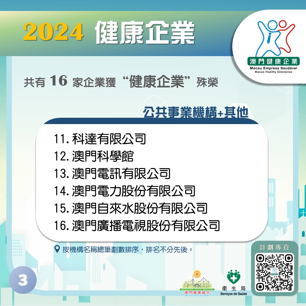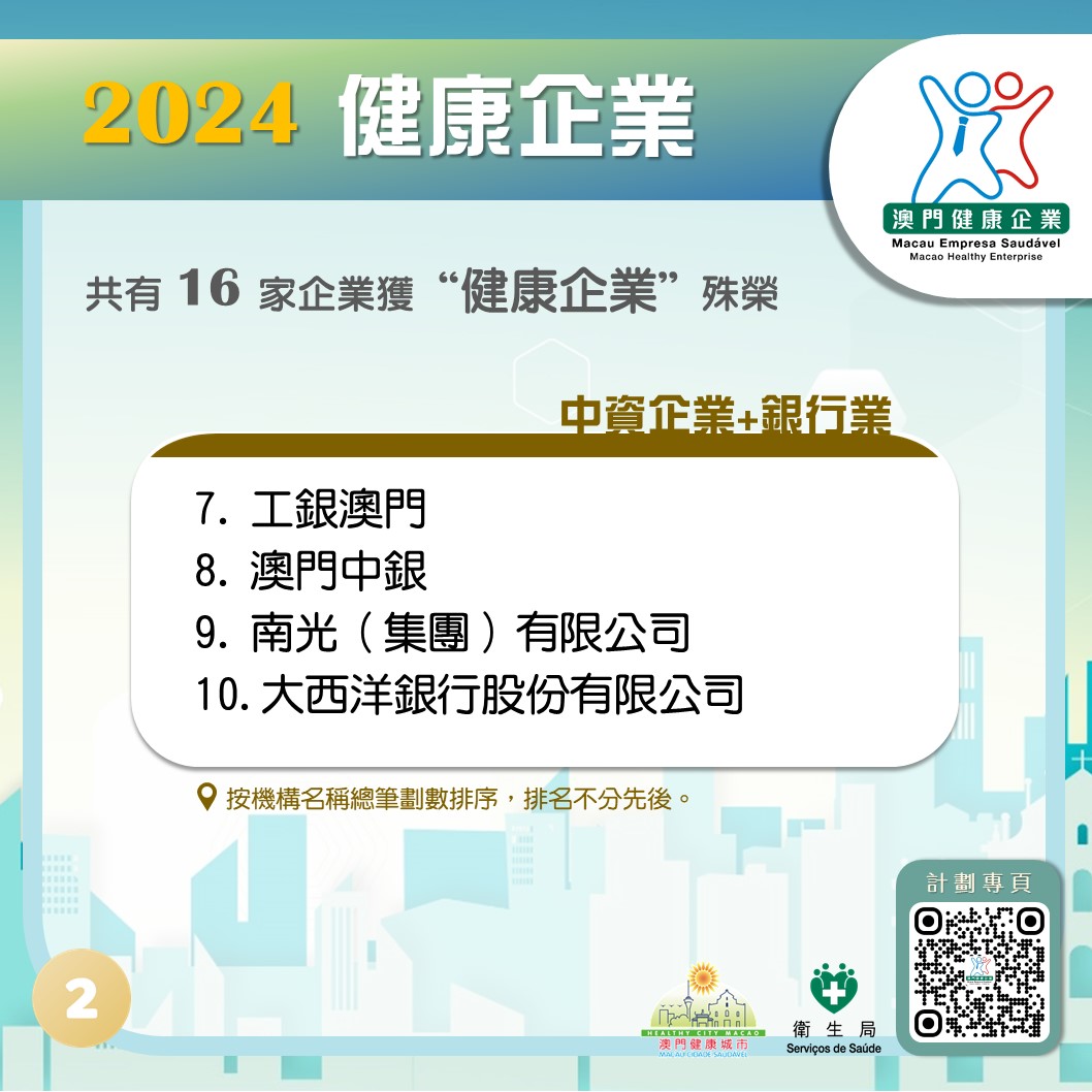 • 2024年榮獲“健康企業”稱號的中資企業及銀行業名單