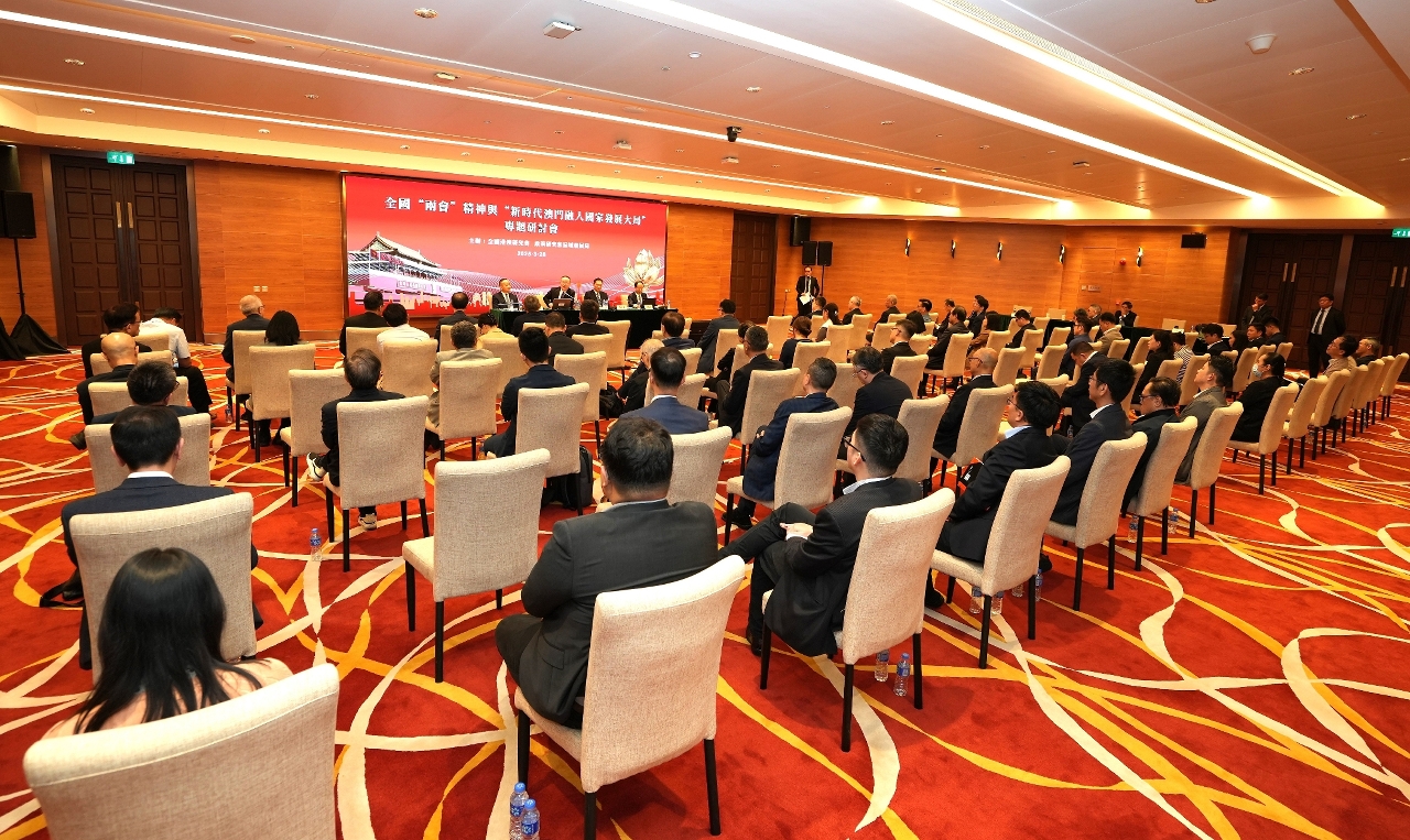 由全國港澳研究會與澳門特區政府政策研究和區域發展局聯合舉辦的全國“兩會”精神與“新時代澳門融入國家發展大局”專題研討會今日下午3時在“中國與葡語國家商貿合作服務平台綜合體”多功能會議廳舉行。