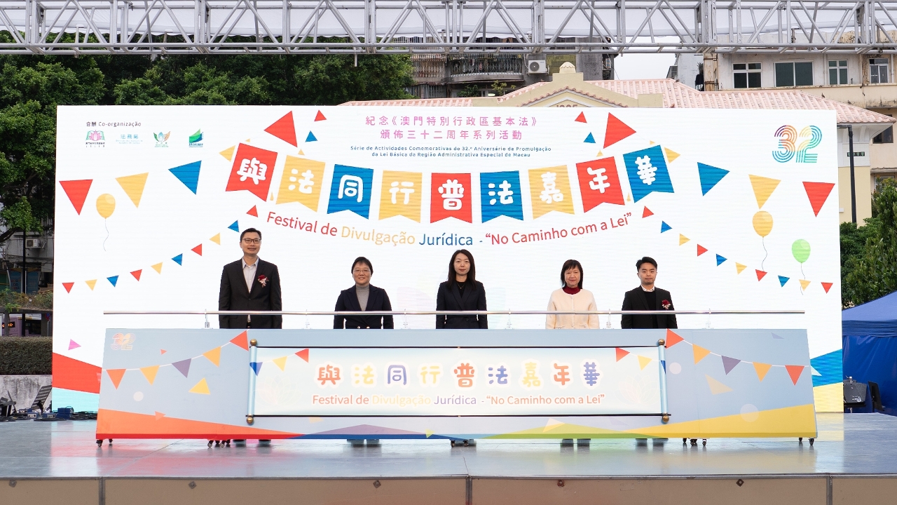 為紀念《中華人民共和國澳門特別行政區基本法》頒佈三十二周年,澳門基本法推廣協會、法務局、市政署和教育及青年發展局於今(30)日假塔石廣場合辦“與法同行-普法嘉年華”,活動吸引逾一萬七千名市民參加。