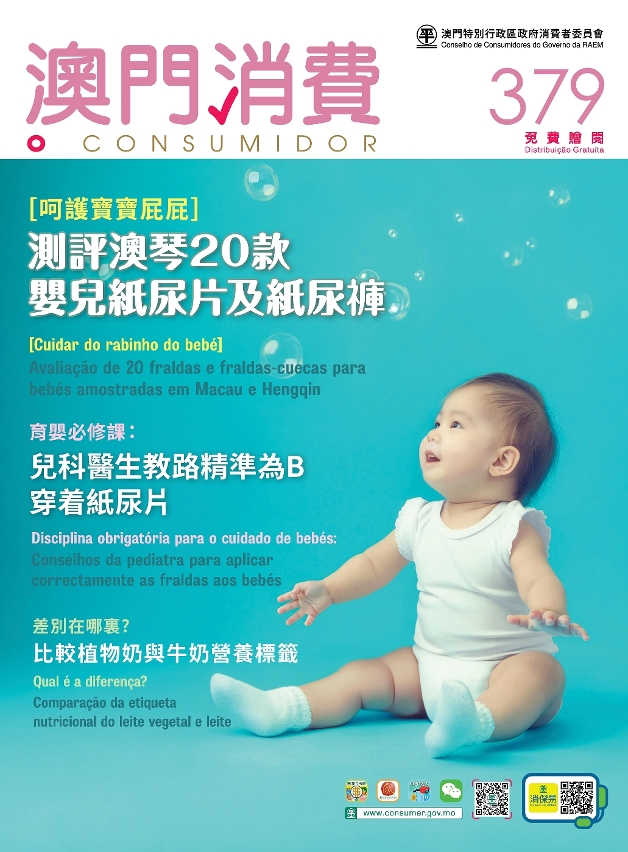 新出版的第379期《澳門消費》刊登澳琴嬰兒紙尿片及紙尿褲比較測試報告。今期《澳門消費》專訪鏡湖醫院兒科醫生講授正確為嬰兒穿着紙尿片或紙尿褲的技巧,以及提供預防與處理嬰兒尿布疹的建議。