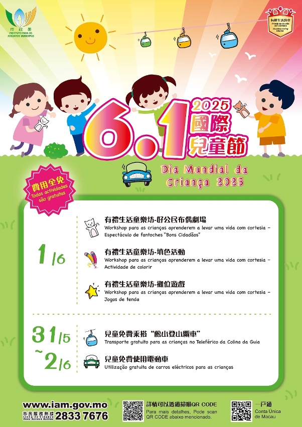 有關詳情,可掃描宣傳海報上的二維碼、瀏覽市政署公民教育資訊網https://www.iam.gov.mo/civicedu或致電市民服務熱線2833 7676查詢。