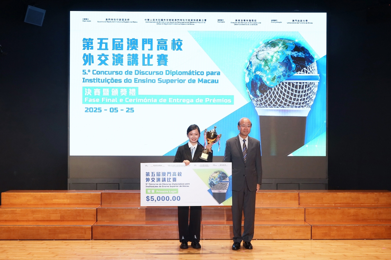 澳大學生陳若晴在第五屆澳門高校外交演講比賽決賽中表現出色,榮獲冠軍。比賽吸引了澳門八所高校約170名學生的熱情參與,經過層層選拔,八位優秀選手晉級決賽。