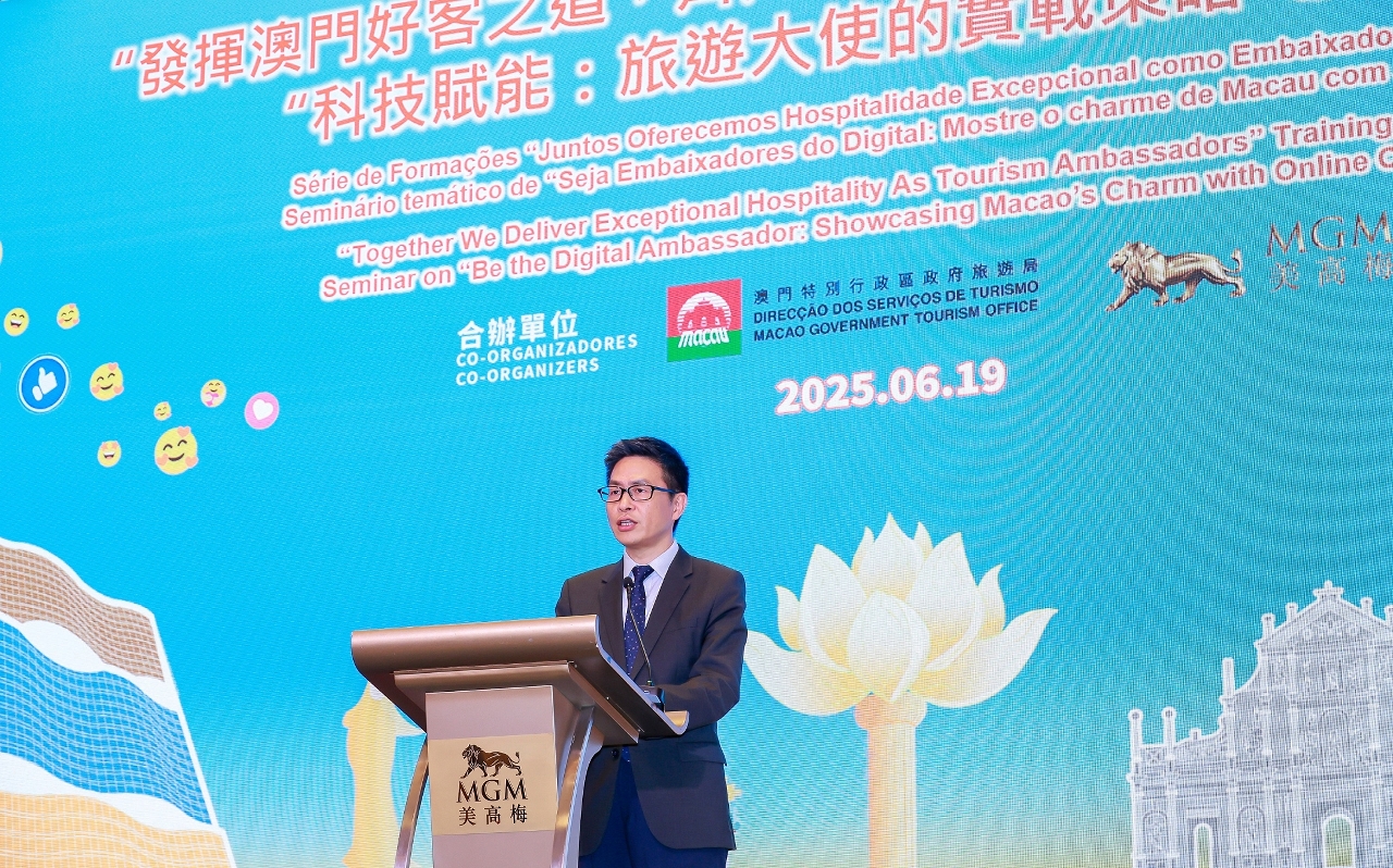 “澳門有禮運動”自2023年啟動以來,旅遊局持續推出相關活動。旅遊局與美高梅在去年分別合辦兩場“發揮澳門好客之道,齊齊參與做旅遊大使”系列培訓的專題講座及“青少年好客有禮活動─澳門旅遊宣傳短視頻大賽”。系列培訓的第三場專題講座今(19日)在美獅美高梅宴會廳舉行,以“科技賦能:旅遊大使的實戰策略”為主題,邀請澳門理工大學工商管理博士學位課程主任賴嘉偉教授主講。內容圍繞AI在轉變傳統旅遊大使角色的作用,讓參與者認識到通過 AI 技術讓每個人都有成為旅遊大使的潛力,並分享利用 AI 工具提升旅遊服務質素。