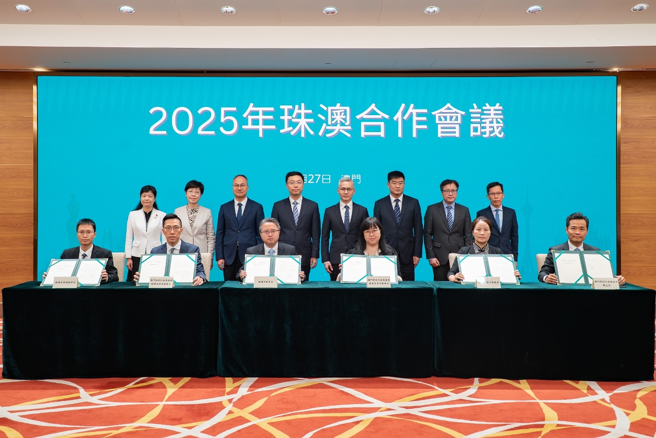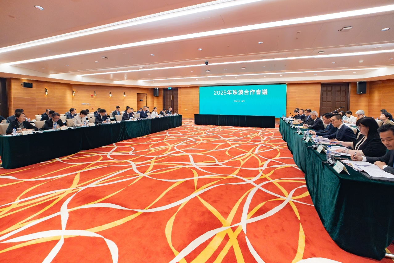 6月27日上午,2025年珠澳合作會議於澳門中國與葡語國家商貿合作服務平台綜合體召開,就珠澳同心貫徹落實習主席的重要講話指示精神,圍繞著力推進橫琴粵澳深度合作區下一階段建設,合力做好促進澳門經濟適度多元發展等共識,以“夯實合作,協力提升粵港澳大灣區國際競爭力”爲主題,共同推進及擴大珠澳各領域合作。澳門特區政府經濟財政司司長戴建業,珠海市政府市長吳澤桐共同主持會議並發言。中央人民政府駐澳門特別行政區聯絡辦公室經濟部副部長楊全州作爲特邀嘉賓出席會議。