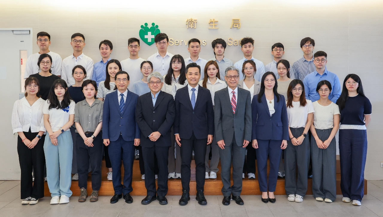 衛生局於日前舉行新一屆住院醫生培訓及開班儀式,亦是新醫學專科培訓及認可制度實施後首屆住院醫生的培訓及開班儀式。衛生局羅奕龍局長、醫學專科學院專業委員會李展潤主席、衛生局郭昌宇副局長、鄭成業副局長和疾病預防及控制中心梁亦好主任等,與25位住院醫生進行了深入交流,聽取其對培訓的期望及建議。