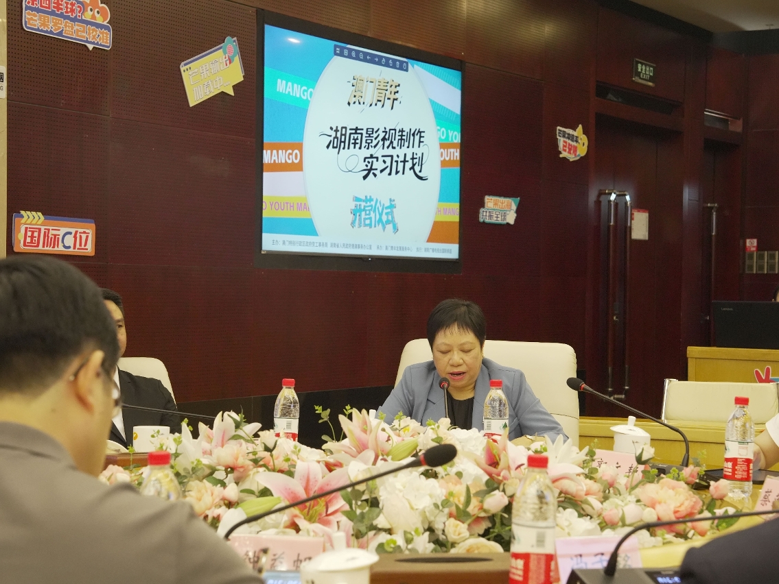 湖南廣播影視集團徐蓉副總經理對澳門青年表示熱烈歡迎,她向澳門青年詳細介紹了集團旗下各機構與澳門交流合作的情況,期待通過歷時一個月的實習實踐,為澳門青年提供一個瞭解內地電視行業的窗口和平臺。最後,澳門實習青年代表表達對這次寶貴機會的感激與期待,期待透過實習,在專業領域深耕成長,讀懂湖湘文化的創新基因,並承諾以專業態度投入實習,讓實習成果成為未來職業生涯的堅實基石。