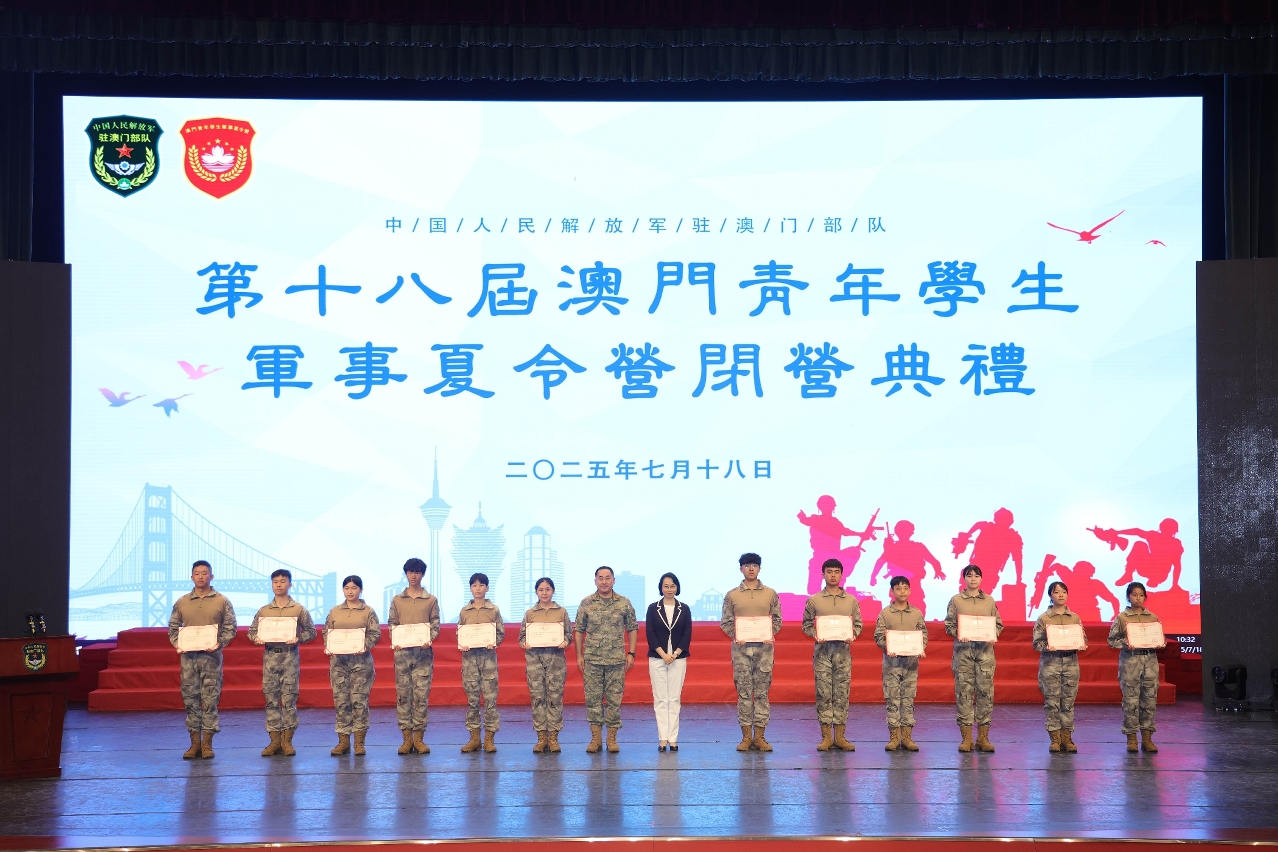由澳門特別行政區政府與中國人民解放軍駐澳門部隊合辦、教育及青年發展局承辦的“第十八屆澳門青年學生軍事夏令營”於7月12日至18日在駐澳部隊氹仔軍營順利進行,並於7月18日上午舉行閉營禮。本屆夏令營共有來自7所高等院校及27所非高等教育學校的159名澳門青年學生參與。