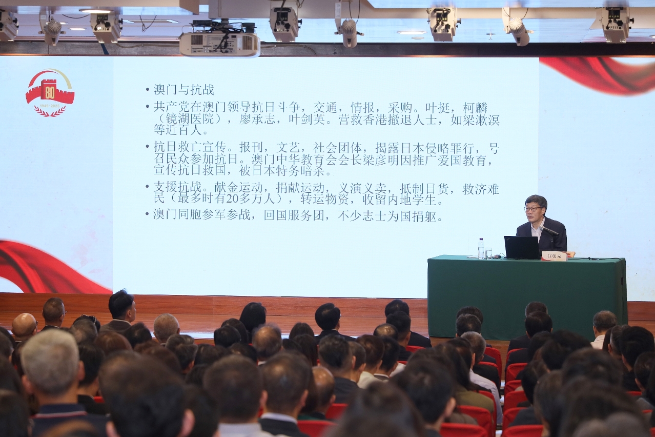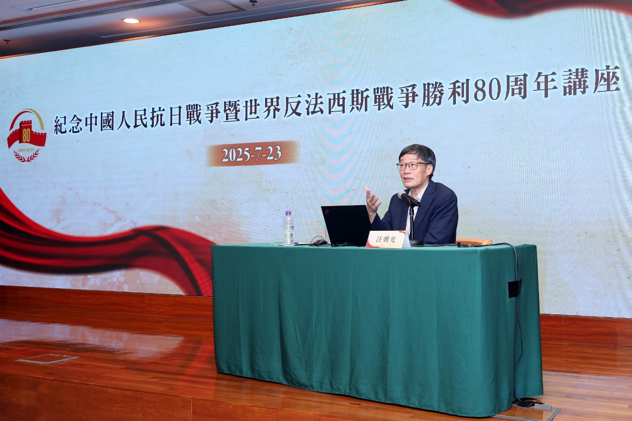 為紀念中國人民抗日戰爭暨世界反法西斯戰爭勝利80周年,特區政府於7月23日在澳門理工大學滙智樓演講廳舉行專題講座,邀請著名近代史專家、現任中國社會科學院大學歷史學院教授、中國社會科學院世界史研究所研究員汪朝光教授主講,以加深與會者對抗戰歷史的全面認識,瞭解抗日戰爭的歷史意義及對國際社會的影響,弘揚珍愛和平、維護和平的精神。
