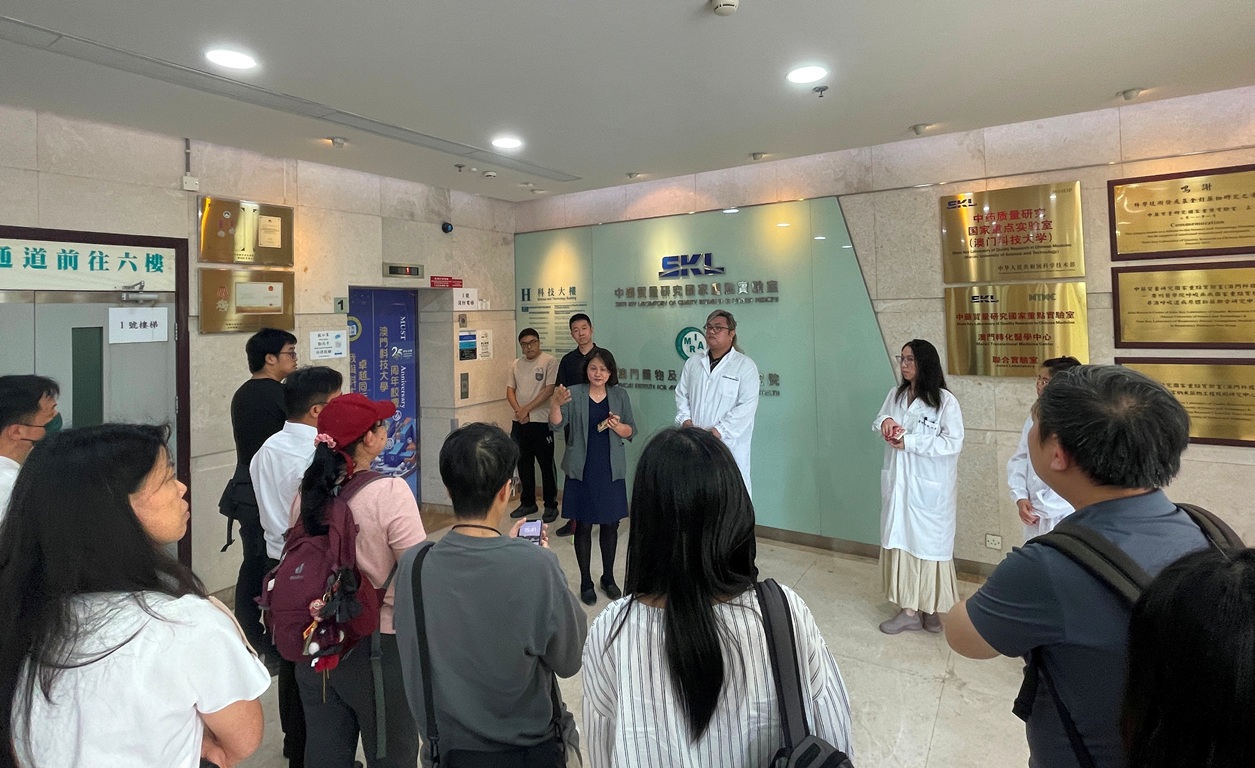 隨後,教職員一行前往澳門科技大學,參觀中藥質量研究國家重點實驗室及月球與行星科學國家重點實驗室,深入了解該校在中醫藥現代化、藥物研發及太空科學等領域的科研成果與課程發展,進一步掌握其在大健康與高新科技方面的教育優勢。