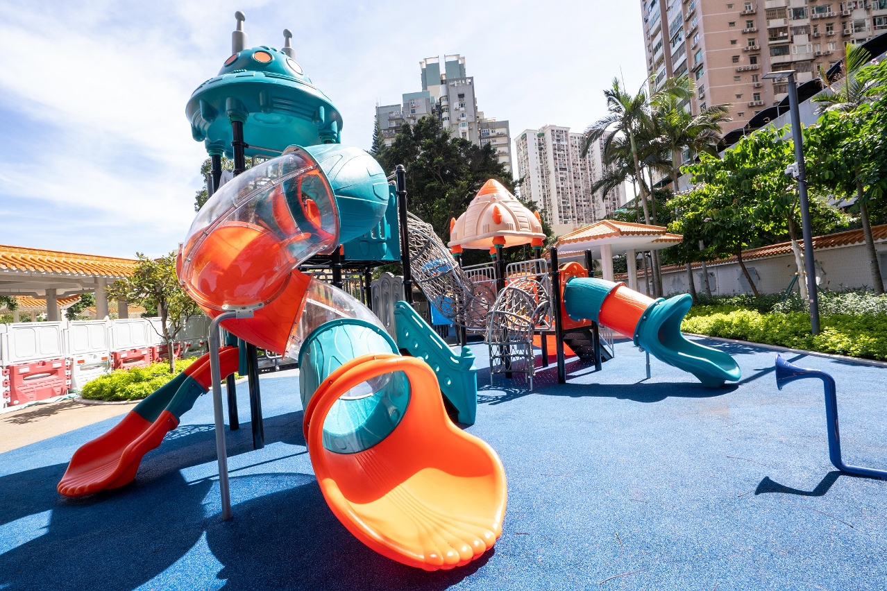 花城公園的兒童遊樂面積約為490平方米,設施及地墊經使用多年已呈老化,是次優化重整設置了適合二至十二歲兒童使用的遊樂設施,包括攀爬及平衡類型遊具、滑梯及韆鞦等,為適齡兒童提供多元化遊樂設施。同時鋪設無縫安全地墊,新增兒童洗手台,加設無障礙通道連接兒童遊樂區及花城公園活動室,優化市民的休憩活動空間,已重新開放遊樂區供小朋友遊玩。