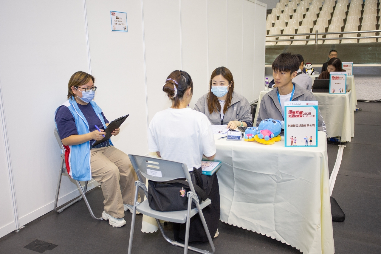 為全力促進各階層求職者對接就業及助力居民向上流動,由勞工事務局主辦、澳門工會聯合總會承辦的 “促進就業大型招聘會”今(20)日於澳門綜藝館揭開序幕,隨即啟動一連三日的活動。招聘會有1,300人預約報名,首日入場人次達1,279。