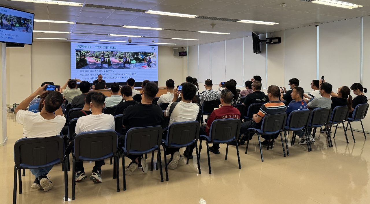 培訓課程分為室內講解與室外實務操作兩部分,內容包括:1、講解操作人員應佩戴的安全防護裝備,確保在使用藥物及機器過程中保障個人安全;2、介紹滅蚊機器及藥物的種類與特性,以了解不同設備的功能與適用場景,以及噴灑的最佳時機; 3、系統說明滅蚊操作流程及注意事項,以掌握標準作業方法;4、由專業人員現場示範超低容量噴霧機及熱霧機的操作,又安排分組實操,以便熟悉設備操作及噴灑技巧,提升整體的實務操作能力。