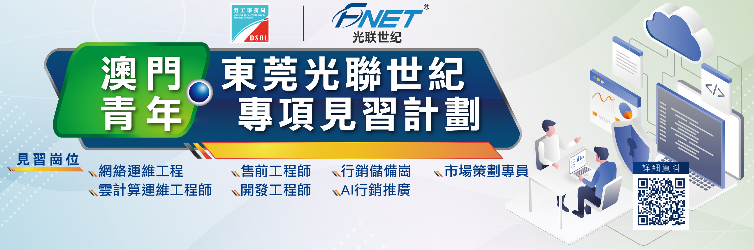 為培育高新技術產業人才及拓展澳門青年的就業發展空間,勞工事務局與光聯世紀信息科技有限公司(下稱“光聯世紀”)合作推出“澳門青年‧東莞光聯世紀專項見習計劃”(下稱“計劃”)。計劃於8月25日中午12時至9月9日中午12時接受網上申請。