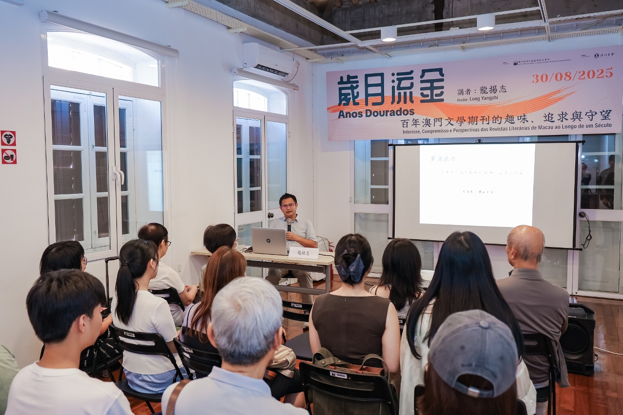 龍楊志在講座中介紹澳門文學期刊的發展和演變,講述從新歷史主義理論視角考察“雪社”傳統文人的現代轉型,抗戰時期多份期刊對民眾身份意識的喚醒,以及60年代《紅豆》作育文學新苗的理想主義實踐,闡釋澳門文學期刊對澳門文學發展的重要意義,追蹤澳門文學界、文化界精英如何參與文化使命與社會關懷的實踐,守護澳門文化根脈,編寫澳門的文學記憶與歲月榮光。