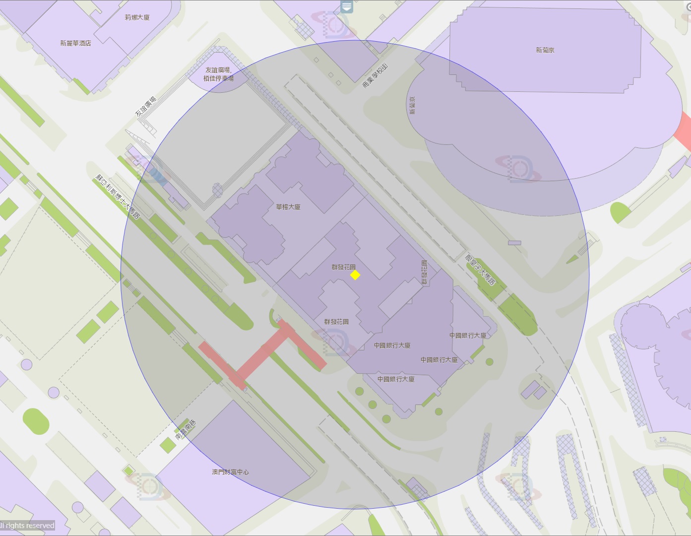 澳門商業大馬路附近風險區域100米半徑範圍