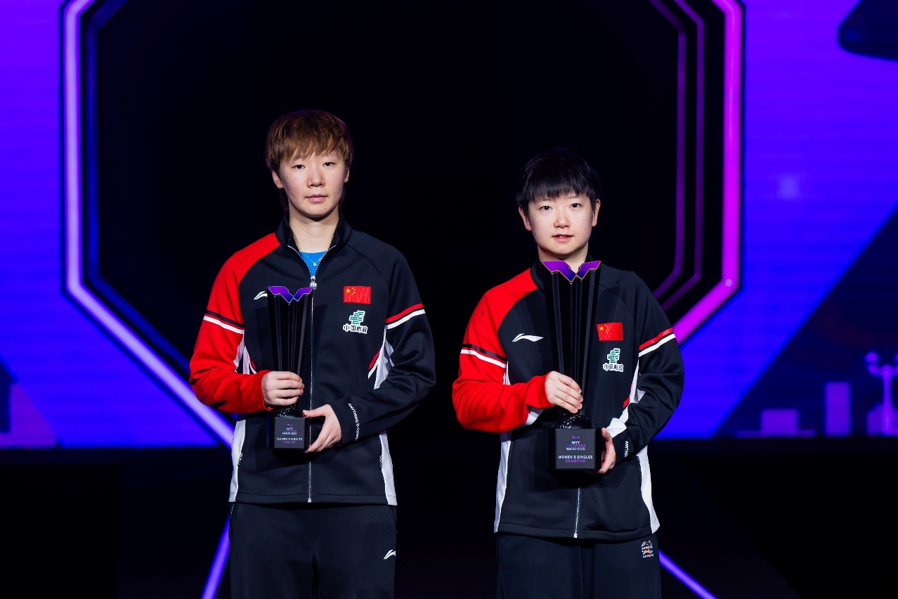 女子單打四強,兩場賽事均由中國球手對壘,孫穎莎與蒯曼一戰,實力佔優的孫穎莎以11:3、11:4先下兩城,蒯曼調整狀態後雖曾以11:8追回一局,但仍難以招架孫穎莎的強攻節奏,最終孫穎莎以11:4、11:8再勝兩局,憑局數4:1取得決賽入場券。另一場比賽,王曼昱在與陳幸同的對決中迅速進入狀態,以11:6、11:4先取兩局,陳幸同在第3局作出反擊,以12:10扳回一城,隨後兩人各取一局,最終王曼昱發揮較佳以11:8鎖定勝局,以局數4:2(11:6、11:4、10:12、11:5、9:11、11:8)勝出,晉級決賽,將與孫穎莎爭奪女單后冠。