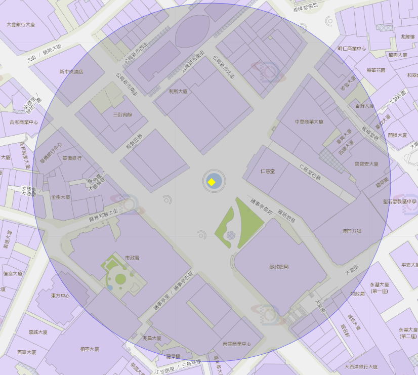新濠天地員工車站(泉福翡翠-麥當勞附近)附近風險區域100米半徑範圍