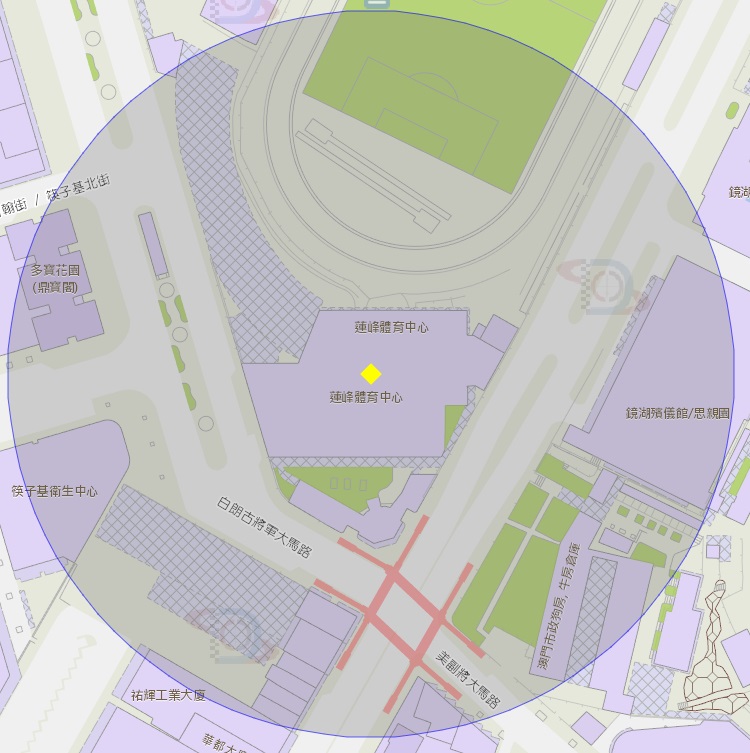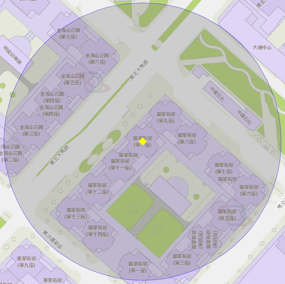 澳門東北大馬路386號廣華新邨第10座附近風險區域100米半徑範圍
