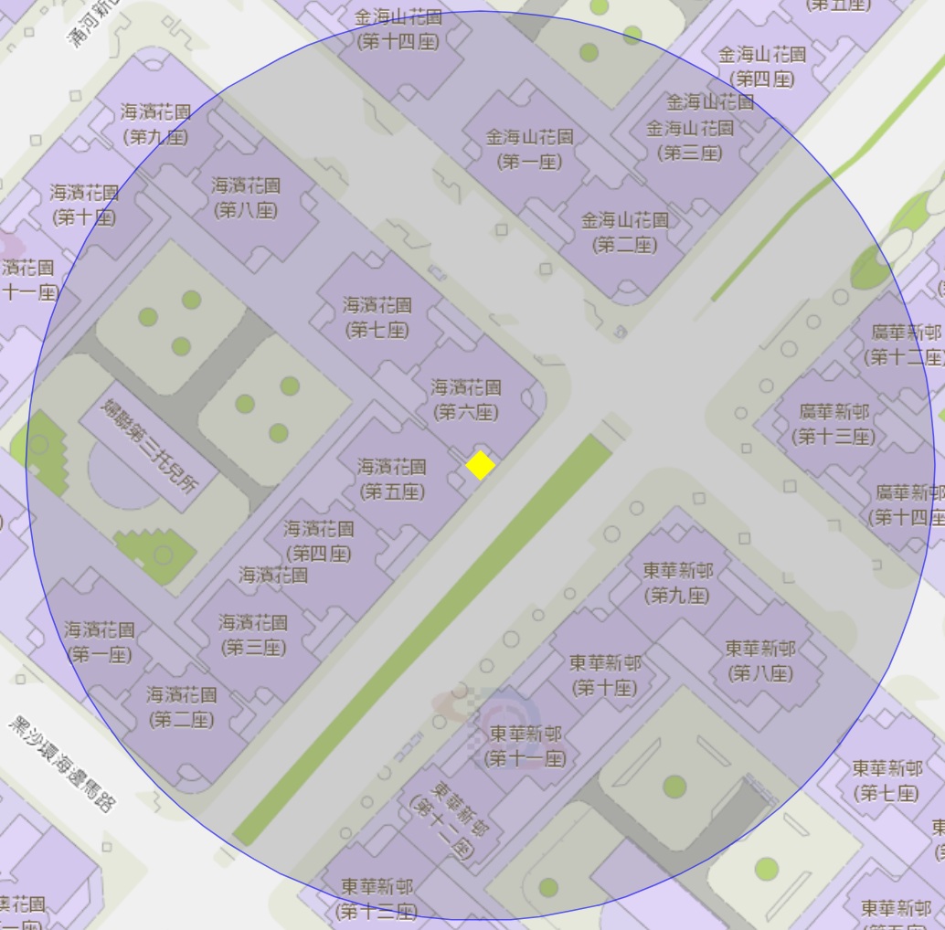 海濱花園銀河員工巴士站附近風險區域100米半徑範圍
