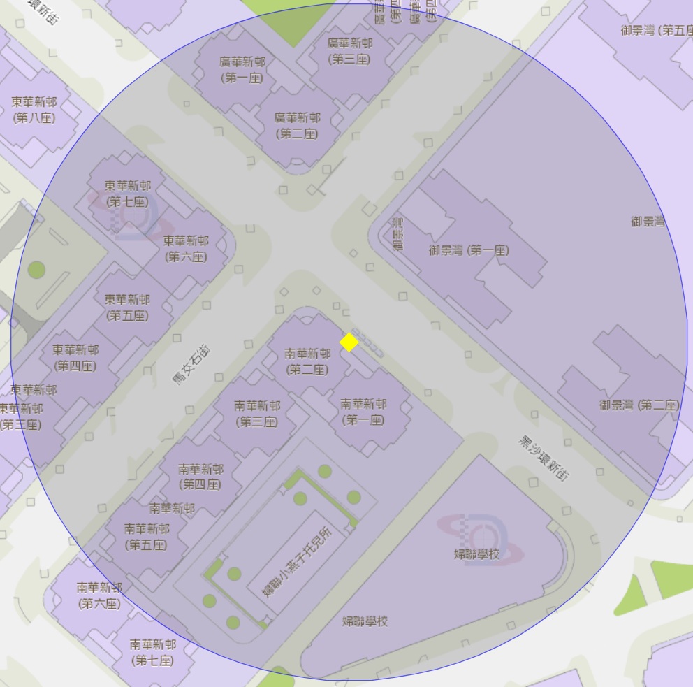 南華新邨ap1及3a巴士站附近風險區域100米半徑範圍