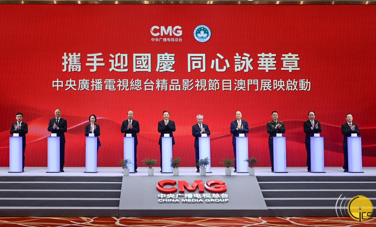 最後,岑浩輝與一眾主禮嘉賓共同啓動“攜手迎國慶 同心詠華章”總台精品影視節目澳門專場展映。